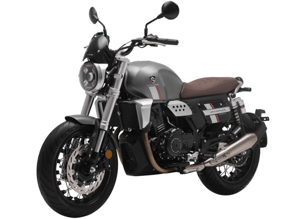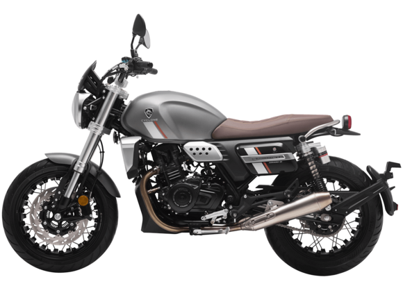 CYCLONE RE3 Scrambler (SR400-A) – универсальный мотоцикл, объединяющий в себе черты городского мотоцикла и эндуро. Управляя им, можно бросить вызов и городским пробкам, и скоростным автострадам, и всевозможному лёгкому бездорожью. Его дизайн отдаёт дань уважения каферейсерской тематике.Двухцилиндровый четырёхтактный двигатель объёмом 401 см3 выдаёт 43 л.с. на 9500 об/мин. Инжекторный впрыск топлива с инжектором BOSCH увеличивает топливную экономичность, а также позволяет добиться высокой приёмистости и неприхотливости агрегата. Жидкостная система охлаждения не допустит перегрева двигателя даже при самом агрессивном вождении. На мотоцикл установлена 6-ступенчатая механическая коробка передач.Максимальная скорость мотоцикла составляет 140 км/ч.Мотоцикл оснащён классическими спицованными колёсами диаметром 17 и 19 дюймов и имеет достаточно большой дорожный просвет – 22 см. С неровностями дороги эффективно справляются телескопическая вилка перевёрнутого типа спереди и маятник с двумя амортизаторами сзади. Ход передней подвески составляет 130 мм, задней – 81 мм. Оба компонента подвески являются регулируемыми. Эффективное и безопасное замедление с любых скоростей обеспечивают гидравлические дисковые тормоза с ABS спереди и сзади.Клиренс мотоцикла составляет 220 мм. Объём топливного бака – 19 л. Снаряжённая масса – 200 кг.На данной модели штатно установлены дуги безопасности, а также имеется бортовой компьютер с цветным дисплеем, USB-порт и подсветка пультов.RE3 Scrambler сочетает в себе отличные технические характеристики, комфорт и надёжность, что позволяет вам ощутить настоящую свободу на любой дороге с любым покрытием.