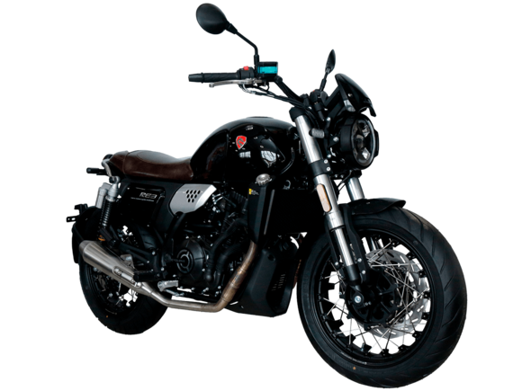 CYCLONE RE401 (SR400-B) 2024 – классик, в котором подчёркнутая простота объединяется с современными технологиями. Данная модель является более продвинутой версией модели RE3 (SR-400) – мотоцикл обладает более современным дизайном, снабжён стильными металлическими накладками на радиатор, а также топливным баком, объём которого увеличен до 20 литров.Двухцилиндровый четырёхтактный двигатель объёмом 401 см3 выдаёт 43 л.с. на 9500 об/мин. Инжекторный впрыск топлива с инжектором BOSCH увеличивает топливную экономичность, а также позволяет добиться высокой приёмистости и неприхотливости агрегата. Жидкостная система охлаждения не допустит перегрева двигателя даже при самом агрессивном вождении. На мотоцикл установлена 6-ступенчатая механическая коробка передач.Максимальная скорость мотоцикла составляет 150 км/ч.RE401 оснащён классическими спицованными колёсами диаметром 17 дюймов. Колёса обуты в бескамерные покрышки TIMSUN. С неровностями дороги эффективно справляются телескопическая вилка перевёрнутого типа спереди и маятник с двумя амортизаторами сзади. Ход передней подвески составляет 130 мм, задней – 81 мм. Оба компонента подвески являются регулируемыми. Эффективное и безопасное замедление с любых скоростей обеспечивают гидравлические дисковые тормоза с ABS спереди и сзади.Клиренс мотоцикла составляет 170 мм. Объём топливного бака – 20 л. Снаряжённая масса – 186 кг.Из дополнительного оборудования можно выделить USB-порт и датчики давления в шинах.Мотоцикл сочетает в себе отличные технические характеристики, комфорт и надёжность, что позволяет вам ощутить настоящую свободу на любой дороге.