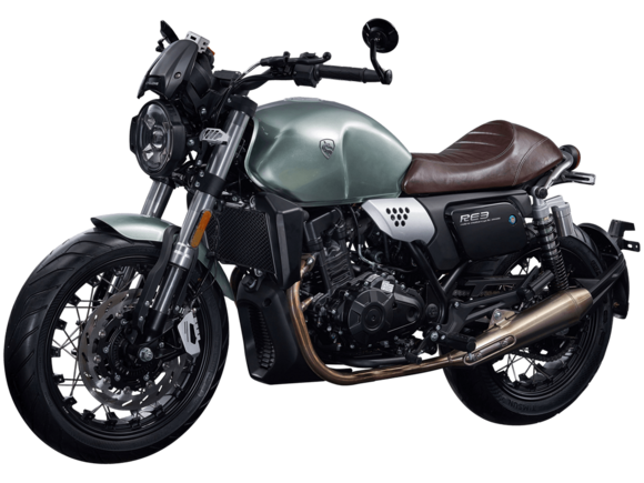 CYCLONE RE5 (SR600) – классик, в котором брутальная простота объединяется с современными технологиями. Данная модель является самой крупнокубатурной среди классических мотоциклов компании CYCLONE.Двухцилиндровый четырёхтактный двигатель объёмом 550 см3 выдаёт 60 л.с. на 8500 об/мин. Максимальный крутящий момент достигается на 6500 об/мин и составляет 55 Н·м. Инжекторный впрыск топлива с блоком управления BOSCH увеличивает топливную экономичность, а также позволяет добиться высокой приёмистости и неприхотливости агрегата. Жидкостная система охлаждения не допустит перегрева двигателя даже при самом агрессивном вождении. На мотоцикл установлена 6-ступенчатая механическая коробка передач.Максимальная скорость мотоцикла составляет 170 км/ч.RE5 оснащён классическими спицевыми колёсами диаметром 17 дюймов. Колёса обуты в бескамерные покрышки от легендарной фирмы PIRELLI. С неровностями дороги эффективно справляются телескопическая вилка перевёрнутого типа спереди и маятник с моноамортизатором сзади. Ход передней подвески составляет 120 мм, задней – 50 мм. Оба компонента подвески являются регулируемыми. Эффективное и безопасное замедление с любых скоростей обеспечивают гидравлические дисковые тормоза с ABS спереди и сзади. Тормозные системы произведены известной испанской фирмой J.JUAN (входящей в легендарный холдинг BREMBO).Клиренс мотоцикла составляет 155 мм. Объём топливного бака – 20 л. Снаряжённая масса – 204 кг.Из дополнительного оборудования можно выделить USB-порт и датчики давления в шинах.Мотоцикл сочетает в себе отличные технические характеристики, комфорт и надёжность, что позволяет вам ощутить настоящую свободу на любой дороге.