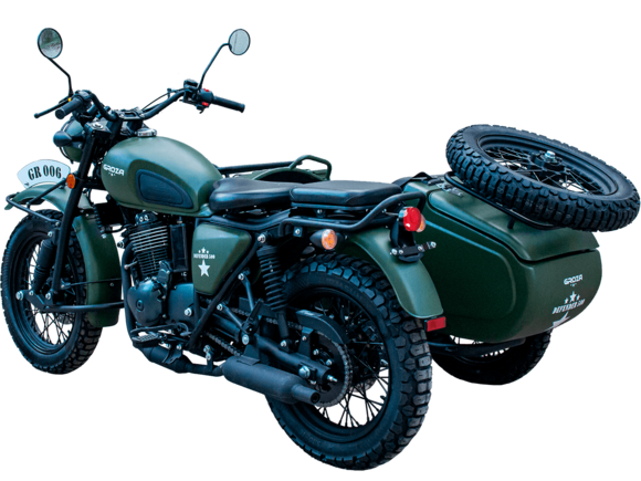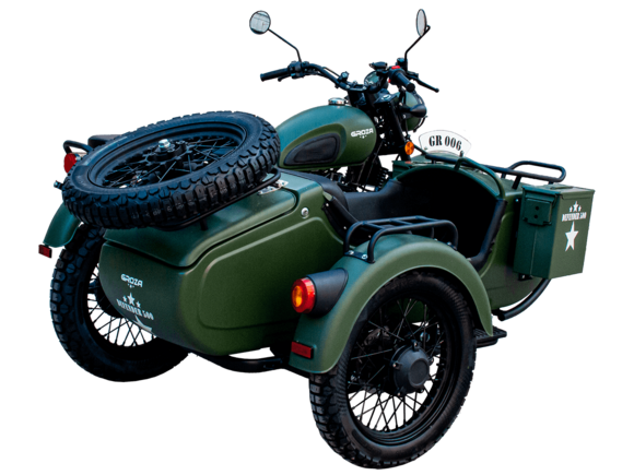 ROZA Defender 500 4T EFI – легендарная модель, представляющая собой сайдкар в стиле ретро-милитари, и напоминающая культовый советский “Урал”. Мотоцикл окрашен в брутальный цвет хаки. Каждый аппарат имеет свой уникальный серийный номер, указанный на олдскульном шильдике, расположенном на переднем крыле.Одноцилиндровый четырёхтактный двигатель воздушно-масляного охлаждения объёмом 445 см3 выдаёт 29 л.с. Инжекторный впрыск топлива с блоком управления BOSCH увеличивает топливную экономичность, а также позволяет добиться высокой приёмистости и неприхотливости агрегата. Привод на ведущее колесо осуществляется цепью.Аппарат имеет 5-ступенчатую механическую коробку передач с реверсом, что существенно облегчает маневрирование в ограниченном пространстве. На мотоцикл установлены классические спицованные колёса диаметром 18 дюймов, обутые в универсальную резину с протектором “ёлочка”, который отлично справляется с ездой по бездорожью. Передняя подвеска редкого типа – маятник с двумя амортизаторами. Сзади установлено два пружинно-гидравлических амортизатора. Эффективное и безопасное замедление с любых скоростей обеспечивают гидравлические дисковые тормоза спереди и сзади с металлокерамическими колодками. Мотоцикл оснащён эргономичным сиденьем с антискользящим покрытием, информативной цифровой приборной панелью, зеркалами заднего вида и яркой галогенной фарой.В задней частим коляски расположен вместительный багажный отсек с двумя газолифтами, а над ним закреплено запасное колесо, которое можно установить взамен любого из трёх колёс мотоцикла – незаменимая вещь для продолжительных путешествий. Также на коляске установлен передний багажник и два боковых кофра. Длительным поездкам также способствует вместительный топливный бак объёмом 13 л. Для безопасности пассажира коляска оснащена ремнём безопасности. Мотоцикл сочетает в себе отличные технические характеристики, комфорт и надёжность, что позволяет вам ощутить настоящую свободу на любой дороге.
