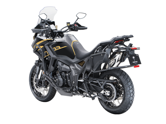 Мотоцикл ZONTES ZT703-F Tour 21/18 2025 – универсальный турэндуро, который подойдёт как для городских поездок, так и динамичных прохватов по грунту благодаря производительной подвеске. Узнайте, что такое настоящее наслаждение путешествием!Силовая установка представлена 3-цилиндровым 4-тактным двигателем объёмом 699 см³ с 4 клапанами на каждом цилиндре и 2 верхними распредвалами. Двигатель способен развивать мощность до 97,2 л.с. при 10 000 об/мин и высокий крутящий момент 76 Н·м при 7500 об/мин, что позволяет развивать большую скорость и с лёгкостью преодолевать трассы со сложным рельефом. Соотношение диаметра цилиндра и хода поршня 70х60,6 мм. Степень сжатия 13:1. Может работать в 2 режимах: ECO и SPORT. Запуск двигателя осуществляется с помощью бесключевого доступа. Установлена алюминиевая защита.Жидкостная система охлаждения эффективно поддерживает оптимальную температуру двигателя. На мотоцикл установлена 6-ступенчатая коробка передач, оснащённая квик-шифтером для переключения передач без использования рычага сцепления.В конструкции мотоцикла используется пространственная алюминиевая рама. Спереди и по бокам картера установлена металлическая защита двигателя. Выхлопная система оснащена стильным глушителем. Ёмкость топливного бака 22 литра.На мотоцикл установлены спицованные бескамерные колёса диаметром 21 дюйм спереди и 18 дюймов сзади. Подвеска изготовлена итальянским производителем MARZOCCHI. Спереди используется телескопическая вилка перевёрнутого типа с ходом 180 мм. Сзади установлен моноамортизатор с ходом 180 мм. Оба компонента регулируются.Дисковые гидравлические тормоза произведены компанией J.JUAN, входящей в холдинг BREMBO. Спереди используется двойной диск 310 мм с 4-поршневыми суппортами, а на заднем колесе расположен диск 260 мм с однопоршневым суппортом. Мотоцикл также оснащён 2-канальной ABS-системой с возможностью отключения, а также настраиваемой противобуксовочной системой.На мотоцикле используется яркая LED-оптика с дополнительным светом и многофункциональная приборная TFT-панель, положение которой можно регулировать. Рычаги тормоза и сцепления можно регулировать. Руль оснащён функцией подогрева и защитой рук. Спереди и сзади установлены видеорегистраторы. Мотоцикл оснащён датчиками давления в шинах. Ветровое стекло имеет электронную регулировку и настраивается через кнопки на руле. Имеется 2 USB-порта. Вещи можно перевозить в багажном отсеке, или присоединить кофры для перевозки: имеется площадка для установки центрального кофра и крепления для боковых кофров. Мотоцикл поставляется с центральной подножкой в комплекте.Габариты мотоцикла 2355x940x1395 мм. Колёсная база 1550 мм. Высота по седлу 830 мм. Вес 228 кг.