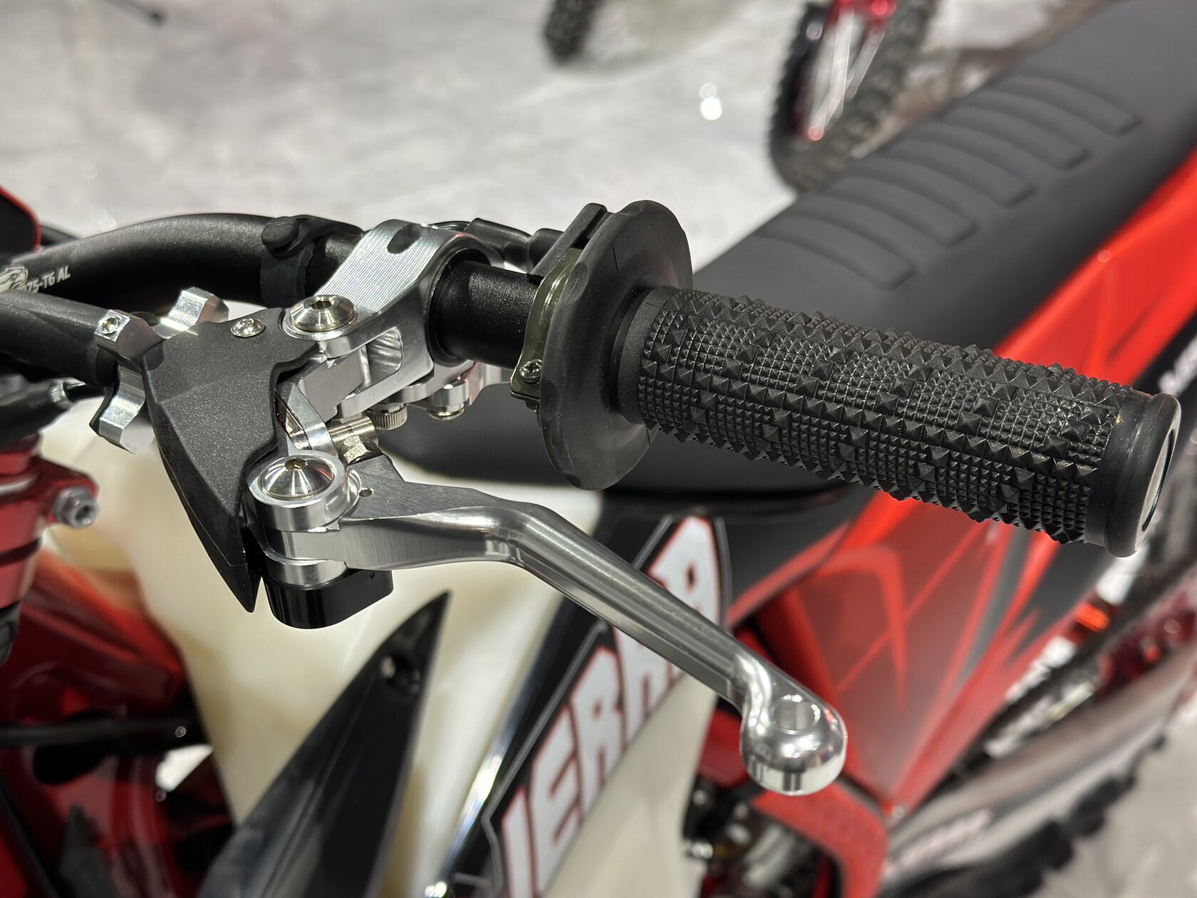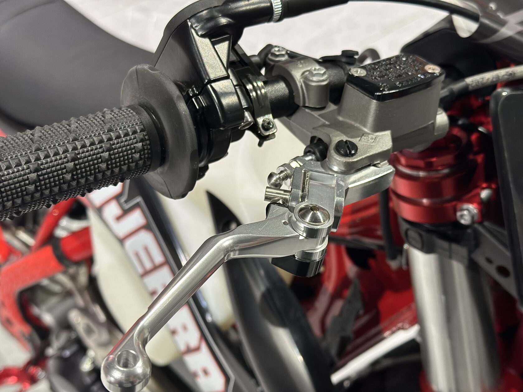 Комплектация - Карбюратор: Nibbi PWK 34. - Траверсы: фрезерованные, прочные и лёгкие, обеспечивают надёжную управляемость. - Обода: усиленные AL7116, прочные алюминиевые диски для долговечности и надёжности. - Фара: 2 EYE LED GENERATION 4, 50W, яркое LED-освещение для хорошей видимости. - Руль: усиленный AL7075, крепкий и лёгкий алюминиевый руль для надёжной работы. - Звезда ведомая: алюминиевая AL7075, 50 зубьев, обеспечивает плавное и стабильное переключение передач. - Маятник: литой алюминиевый, прочный и лёгкий для повышения устойчивости. - Диски тормозные: AJ1, передний и задний, обеспечивают эффективное торможение. - Рычаги тормоза и сцепления: длиной 270 мм, для комфортного управления. Подножки: AJ1 копия S3 и копия KTM 24, надёжные и удобные для водителя. - Цепь: усиленная KMC 520 Pro, долговечная цепь для надёжной передачи мощности. - Ручка газа: Nibbi, удобная и точная регулировка. - Счётчик моточасов: есть, позволяет отслеживать время работы двигателя. - Защита мотора и рамы: установлены, обеспечивают безопасность и долговечность конструкции. - Сидение: AntiSkid, противоскользящий материал для комфортной и безопасной посадки.
