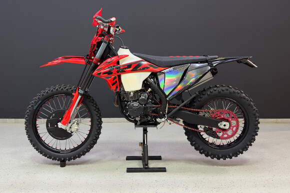 Размер и тип колес – 21х18 обода алюминиевые, ККЕ, сплав 7 серии. Фрезерованные ступицы. Передние покрышки GEMA F-ENDURO 90/90-21, задние GEMA EX SUPER SOFT 140/80-18.
