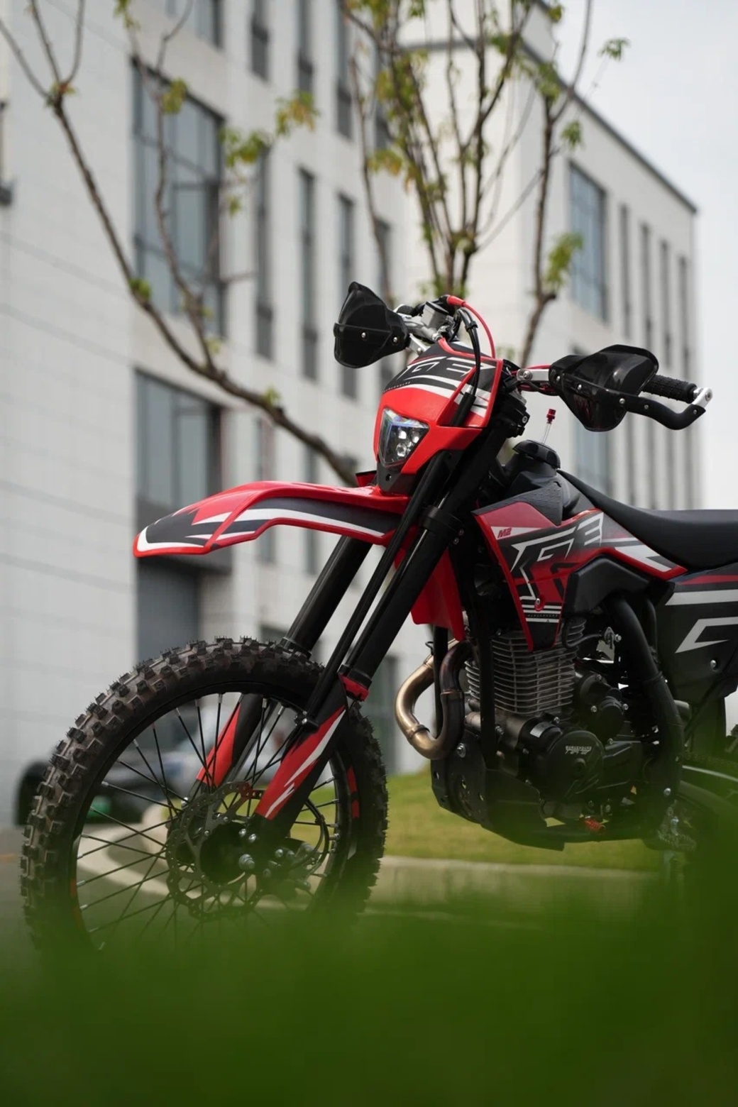 Мотоцикл GE Ranger YB300R представляет собой современный эндуро-байк, разработанный для активного катания по пересечённой местности и внедорожных приключений. Он сочетает в себе надежный двигатель, качественные компоненты подвески и продуманный дизайн, обеспечивая отличную управляемость и комфорт.Сердцем модели является 4-тактный одноцилиндровый двигатель Loncin YB300R объёмом 300 см³ с воздушным охлаждением. Электростартер облегчает запуск двигателя, а механическая 6-ступенчатая коробка передач позволяет полностью контролировать динамику и скорость мотоцикла.Передняя и задняя подвески MNT обеспечивают отличное демпфирование и стабильность на любых покрытиях. Передняя перевернутая вилка диаметром 41 мм с регулировкой сжатия и отскока, а задняя прогрессивная подвеска с алюминиевым маятником позволяют уверенно преодолевать препятствия и неровности трассы.Модель оснащена гидравлическими дисковыми тормозами диаметром 260 мм спереди и 220 мм сзади, что гарантирует эффективное торможение и безопасность. Дополнительно предусмотрена защита двигателя, защита рук, цифровая приборная панель и LED-освещение, обеспечивающие комфорт и контроль во время езды.GE Ranger YB300R идеально подходит для райдеров, которые ценят надёжность, динамику и уверенность на любых трассах. Этот мотоцикл сочетает передовые технологии и прочные компоненты, позволяя наслаждаться внедорожными приключениями без ограничений.