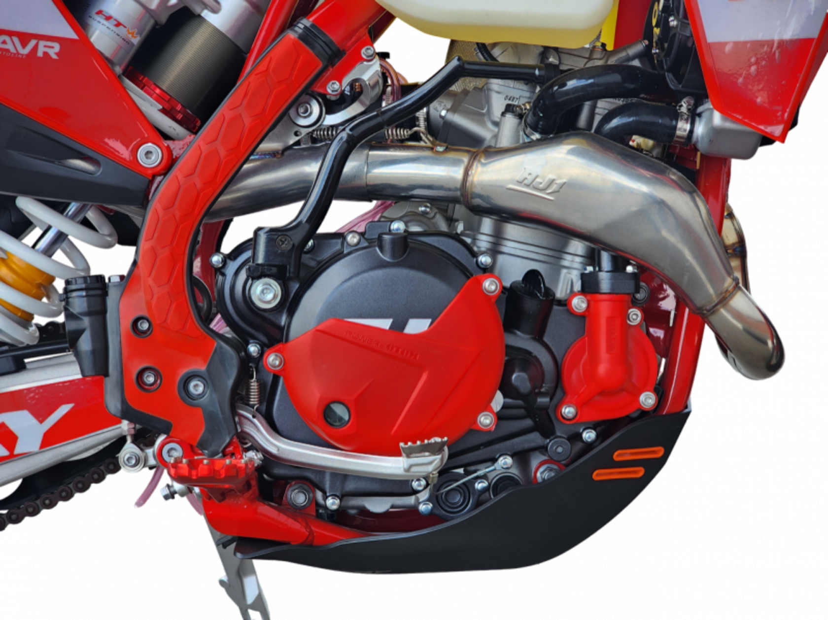Hasky F7 PRO 177MM 2025 – обновленная классика эндуро с премиальными характеристикамиЭтот полноразмерный мотоцикл на колесах 21/18 дюймов представляет собой современную интерпретацию классического эндуро, сочетающую проверенные решения и инновационные технологии. В основе модели лежит мощный двигатель ZS 177MM NC298 с балансирным валом, развивающий 31 л.с. и оснащенный 5-ступенчатой коробкой передач. Двойная система запуска (кик-стартер и электростартер) обеспечивает надежность в любых условиях, а карбюратор Nibbi PWK 34 Black гарантирует стабильную работу силового агрегата.Подвеска HTW T9 с 48-миллиметровыми вилками закрытого картриджа (со всеми регулировками) и алюминиевым маятником обеспечивает превосходную управляемость на сложных трассах. Траверсы CNC AJ1 двойного охвата и 360-градусная защита перьев вилки демонстрируют продуманность конструкции.Тормозная система AJ1 (аналог Brembo) в сочетании с алюминиевыми ободами KKE, фрезерованными ступицами и подшипниками NSK обеспечивает уверенное торможение. Эргономика продумана до мелочей: усиленный руль из сплава 7075, грипсы AJ1 Lock On, антискользящее сиденье, пульты KTM и широкие подножки AJ1 создают комфортные условия для райдера.Комплексная защита включает элементы OTOM для двигателя, радиатора, рамы и тормозного диска, дополненные буксировочными стропами. Колеса с покрышками Cordial (18" заднее, 21" переднее) оснащены 3-миллиметровыми камерами и фиксаторами AJ1.Дополнительные преимущества: негорючий воздушный фильтр увеличенной площади, полностью влагозащищенная проводка, светодиодная фара с 4 линзами и комплект инструментов.