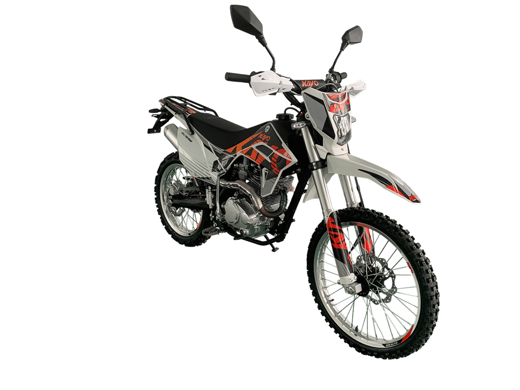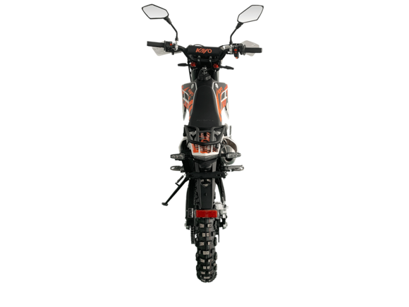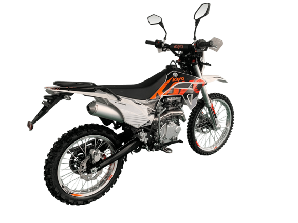 KAYO K1-J 150 ROAD (CB150) 19/16 (2025 г.) ПТС – мотоцикл, который создан для тех, кто готов покорять внедорожные трассы.4-тактный мотор с воздушным охлаждением и одним верхним распределительным валом (SOHC) сочетает надёжность и отличную динамику. Объём двигателя составляет 144,6 см³. Он обеспечивает мощность в 12 л.с. при 8500 об/мин и максимальный крутящий момент 10 Н·м при 6500 об/мин. Степень сжатия 9,2:1, диаметр и ход поршня – 65,5 x 49,5 мм. Всё это работает в паре с карбюратором PE24, который гарантирует стабильную работу двигателя.Система запуска универсальная: электростартер и кикстартер, чтобы вы всегда были готовы к поездке. Тип зажигания CDI.Коробка передач механическая с 5 ступенями. Привод цепной. Топливный бак на 6 литров.Мотоцикл оснащён нерегулируемой передней 735 мм вилкой и задним 360 мм амортизатором. Задний маятник и прогрессия стальные. Траверсы выполнены из литого алюминия.Колёса размером 19 дюймов спереди и 16 дюймов сзади. Алюминиевые обода, ступицы и буксаторы. Для уверенной остановки предусмотрены гидравлические дисковые тормоза спереди и сзади.Габариты 1850×760×1060 мм и сухая масса всего 95 кг. Колёсная база 1250 мм. Дорожный просвет 250 мм, высота по седлу 790 мм.На KAYO K1-J 150 ROAD можно выезжать на дороги общего пользования благодаря наличию ПТС, цифровой приборной панели, звукового сигнала, зеркал заднего вида и необходимого набора светотехники.Имеются стальные подножки для поездок с пассажиром и задняя багажная платформа. Пластиковая защита рычагов.