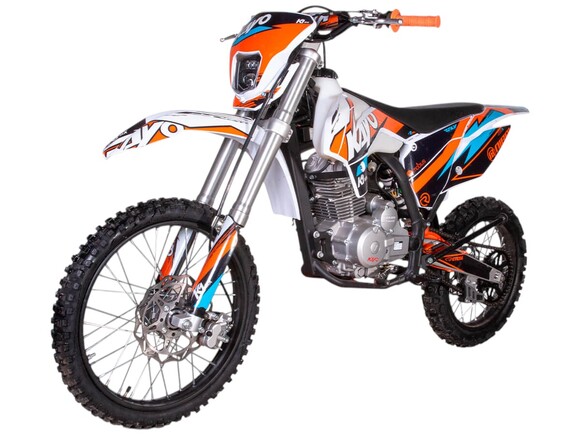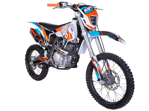 Мотоцикл KAYO K6-R KYB 250 – идеальный снаряд для внедорожного экстрима, представляющий собой оптимальный баланс производительности и технической оснащённости, поэтому он идеально подходит как новичкам, так и опытным райдерам. Удобный, простой и надёжный мотоцикл, который полностью оправдывает свою цену.Мотоцикл оснащён одноцилиндровым 4-тактным 4-клапанным двигателем (NC250SR ZS177MM-B) с двумя распредвалами и объёмом 250 см3, который обеспечивает высокую мощность (36 л.с.) и крутящий момент, что позволяет развивать большую скорость и с лёгкостью преодолевать трассы со сложным рельефом. Карбюратор FCR MX 41 обеспечивает бесперебойную работу техники в самых жёстких условиях эксплуатации, простоту и лёгкость в обслуживании, а также неприхотливость к качеству топлива. Жидкостная система охлаждения не допустит перегрева мотора даже при самом агрессивном вождении. Двигатель работает в паре с 6-ступенчатой механической коробкой передач с классической схемой “1-N-2-3-4-5-6”. Аппарат оснащён системой запуска двигателя при помощи кнопки электростартера или при помощи рычага кик-стартера.Усиленная рама из хром-молибденового сплава разработана фирмой KAYO. Передняя подвеска — регулируемая телескопическая вилка перевёрнутого типа длиной 950 мм, задняя — регулируемый моноамортизатор 480 мм с прогрессией, рассчитанный на высокие нагрузки. Оба компонента подвески произведены знаменитой фирмой KYB (KAYABA). В паре они позволяют эффективно амортизировать удары при езде по неровностям и препятствиям на трассе. Мотоцикл оснащён классическими спицованными колёсами диаметром 18 дюймов сзади и 21 дюйм спереди. Они имеют усиленные обода из алюминиевого сплава марки 7050, лёгкие ступицы из фрезерованного алюминия, усиленные 4-миллиметровые спицы, буксаторы и качественные покрышки известного шинного бренда KENDA. Эффективное и безопасное замедление с любых скоростей обеспечивают гидравлические дисковые тормоза от фирмы BRAKTEC с тормозными рычагами PRO CAKEN.Мотоцикл достаточно компактен и имеет вес всего в 114 кг, поэтому он комфортен в эксплуатации одновременно и для мужчин среднего телосложения, и для девушек.Высококачественная износостойкая резина с развитым протектором отлично держит дорогу на различных типах покрытия и в самых разных поворотах. Сиденье эргономичной формы покрыто антискользящим материалом. Данная модель укомплектована очень яркой фарой со светодиодным модулем, которая позволяет кататься и в ночное время.K6-R KYB 250 сочетает в себе отличные технические характеристики, комфорт и надёжность, что позволяет вам ощутить настоящую свободу на любой трассе.