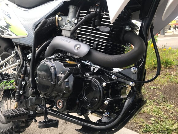 Новинка сезона 2024 года!Мотоцикл Кросс 300 XT300 HS (175FMM 4V) это отличный кроссовый мотоцикл. Имеет хорошую проходимость и тяговую мощность за счет установленного 4х клапанного двигателя 175FMM, мощностью 25 л.с., и карбюратором NIBBI PE 30.Разгоняется до 140 км/ч. Выхлопная система с резонатором, глушитель алюминиевый. Идеален для бездорожья, т.к. его кроссовые шины (110-100) и (80-100) просто созданы для езды по мягкому и среднему грунту.Телескопическая вилка перевернутого типа GPX c регулировкой (сжатие и отбой) с усиленными траверсами позволяет легко преодолевать ямы, ухабы и другие неровности. Задняя подвеска маятниковая с прогрессией – моноамортизатор с бачком и регулировкой на сжатие и отбой.Его дерзкий дизайн подчёркивает неуступчивый спортивный характер байка.Мотоцикл весит 120 кг, выдерживает нагрузку до 150 кг. Прочный облицовочный пластик не ломается при сгибании, защищает от грязи. Надёжно закрепленный руль имеет переменное сечение: 28 мм в месте крепления и 22 мм на концах под грипсами, а также короткоходную ручку газа. На мотоцикле установлена защита рук. Покрышки на алюминиевых ободах оснащены усиленными спицами и антибуксаторами, размер заднего колеса — 18 дюймов, переднего — 21 дюйм, крепятся на полые оси.Для запуска двигателя можно использовать электростартёр или кикстартёр. Система зажигания электронная (CDI). Механическая трансмиссия содержит 5 передач. У мотокросса отличный запас хода: объём топливного бака — 7 л, расход топлива — 5 л на 100 км. Передняя светодиодная линзованная фара обновленного дизайна легко включается поворотом замка зажигания и позволяет ездить в сумерках и темноте, возможность установки зеркал заднего вида. Карбоновая защита глушителя. Металлическая защита картера. Нейлоновая защита рамы. Цепь 520 с ловушкой. Задняя звезда алюминиевая. Ступица на 6 болтов. Увеличенный диаметр передней и задней осей колеса. Есть защита тормозного диска, защита рук и счетчик моточасов .Мотоцикл оснащён надёжными тормозами с передним двухпоршневым тормозным суппортом и задним однопоршневым тормозным суппортом. Передний тормозной диск оборудован защитой.