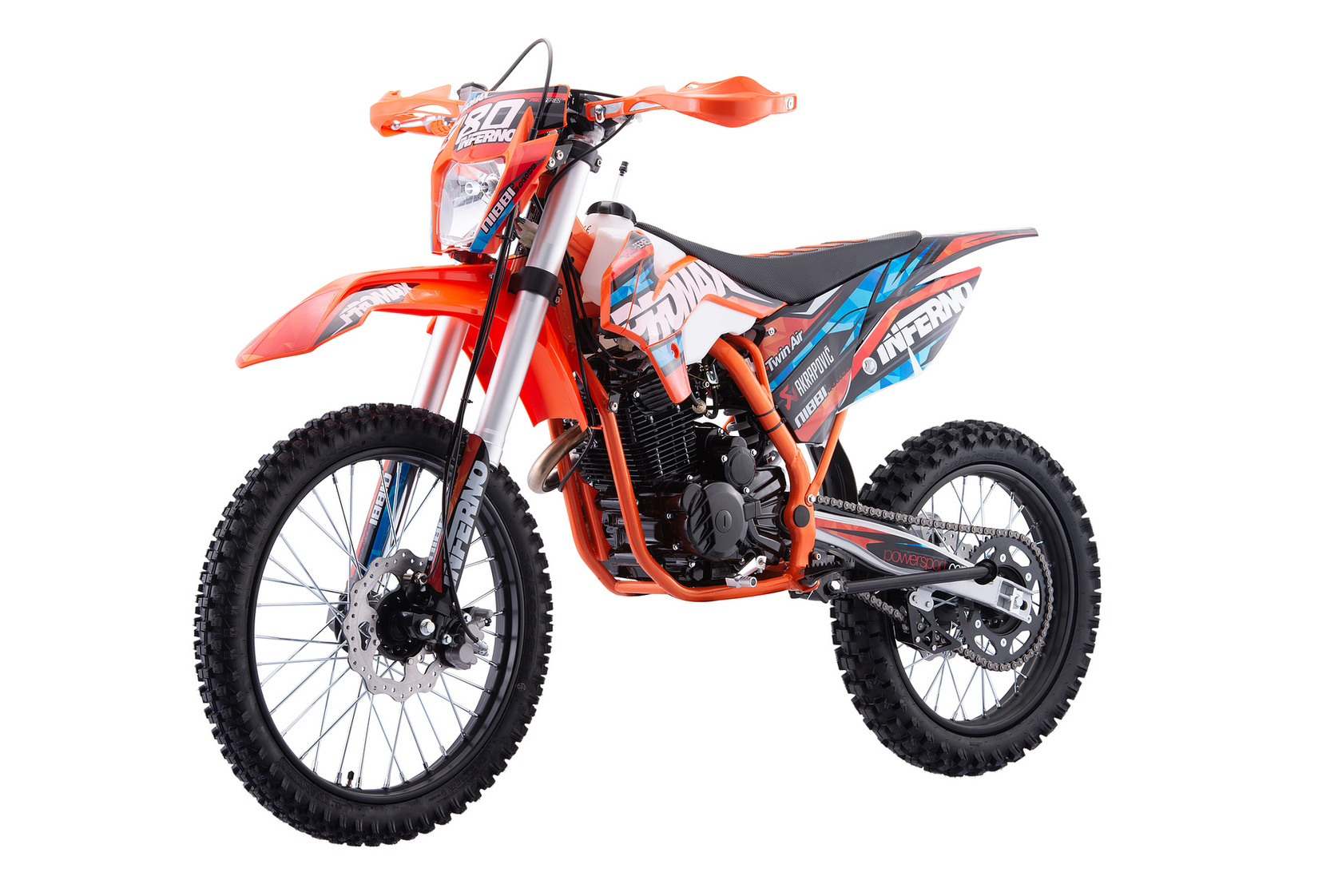 Главная ... Эндуро PROMAX Кроссовый мотоцикл PROMAX INFERNO 380 (4 valves, 5 gears) оранжево - черный-голубой
