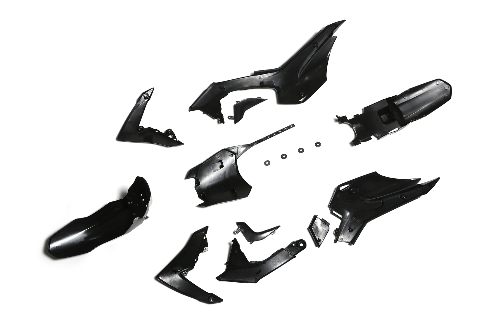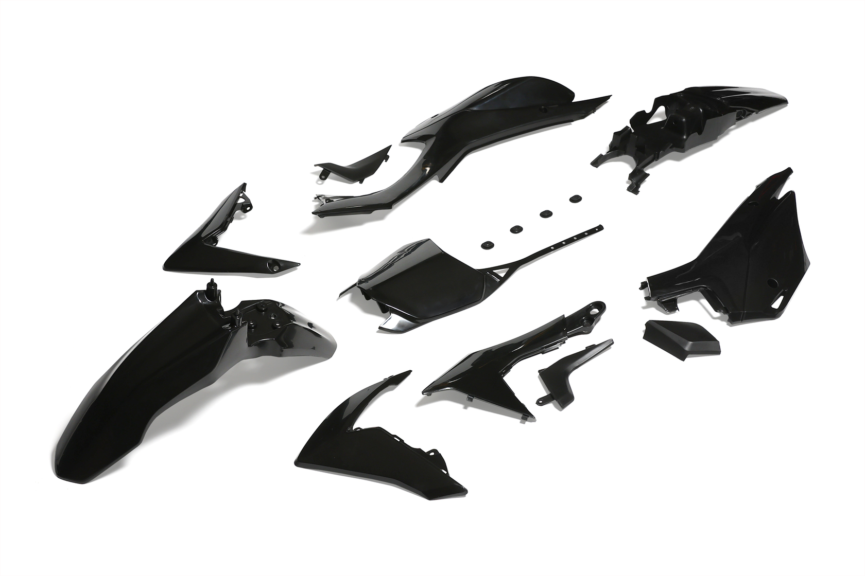 • Полный комплект пластика для питбайков и среднеразмерных эндуро мотоциклов с типом пластика CRF110 нового образца. Новый комплект отличается обновлённым дизайном и иной формой заднего крыла (хвоста). Допускается установка вместо старого образца с доработкой хвоста.