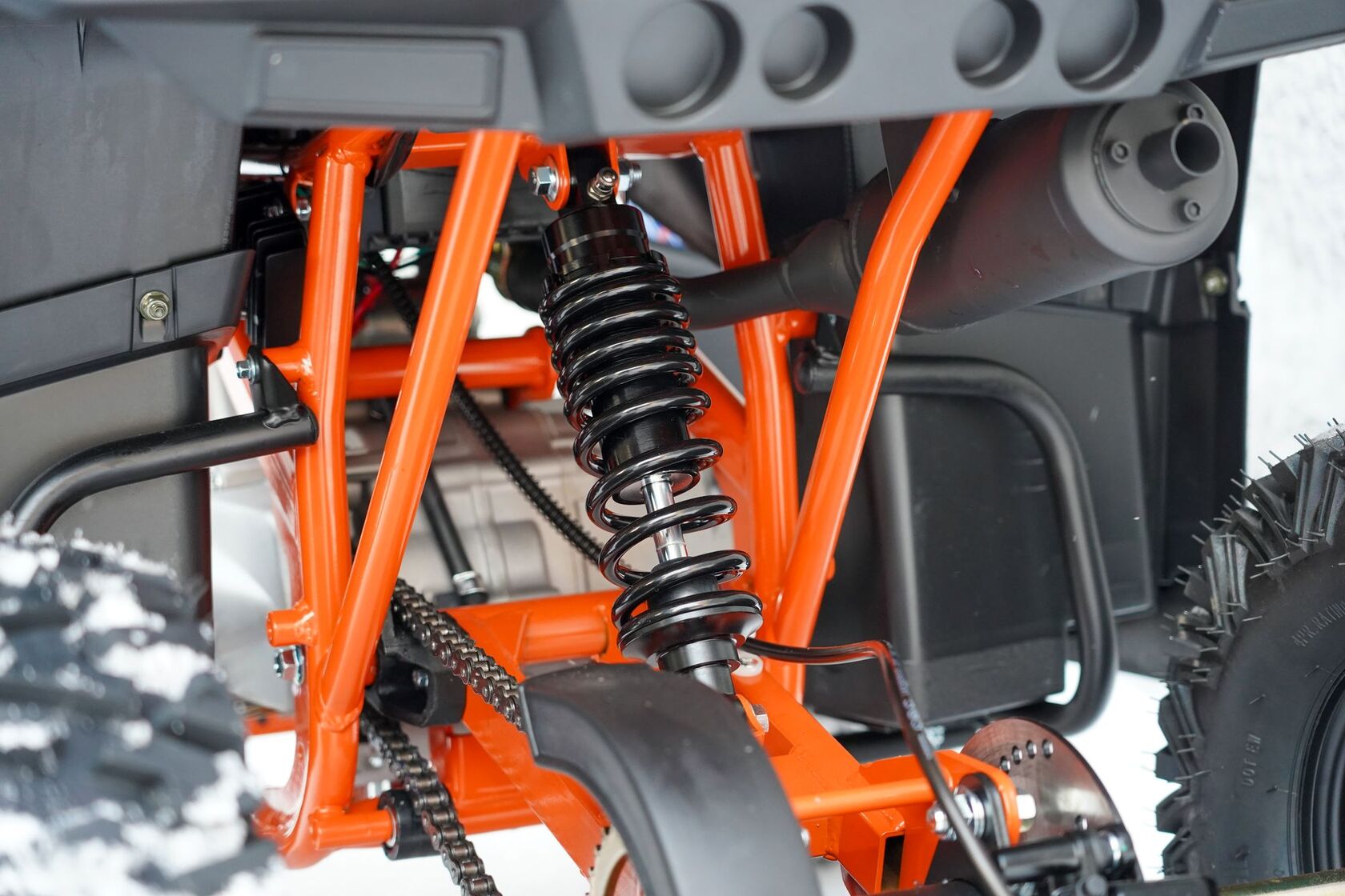 Встречайте детский квадроцикл BSE XT-1U в ярком утилитарном дизайне.XT-1U оснащен тяговитым и надежным 125 кубовым двигателем Zongshen ZS154 FMI. Наша гордость — энергоемкая подвеска с большими ходами, выдерживающая высокие нагрузки.Спереди у квадроцикла установлен внушительный защитный металлический бампер. Также у XT-1U имеется высокий клиренс, широкие арки для защиты от грязи, защита рук, защита днища, защита задней звезды, ловушки для ног.Из удобств и комфорта у квадроцикла имеется: яркая LED оптика спереди, задний стоп-сигнал, мощные гидравлические дисковые тормоза, удобное сиденье, регулируемый ход курка газа (родительский контроль), аварийный выключатель-чека двигателя, защитная подушка на перекладине руля.Квадроцикл имеет усиленную стальную раму, максимально жесткую, и два багажника с грузоподъемностью в 20 кг. Допустимая нагрузка составляет до 110 кг.Теперь можно круглогодично наслаждаться драйвом от управления легкого квадроцикла и преодоления новых трасс и направлений, включая достаточно серьезное внедорожье.