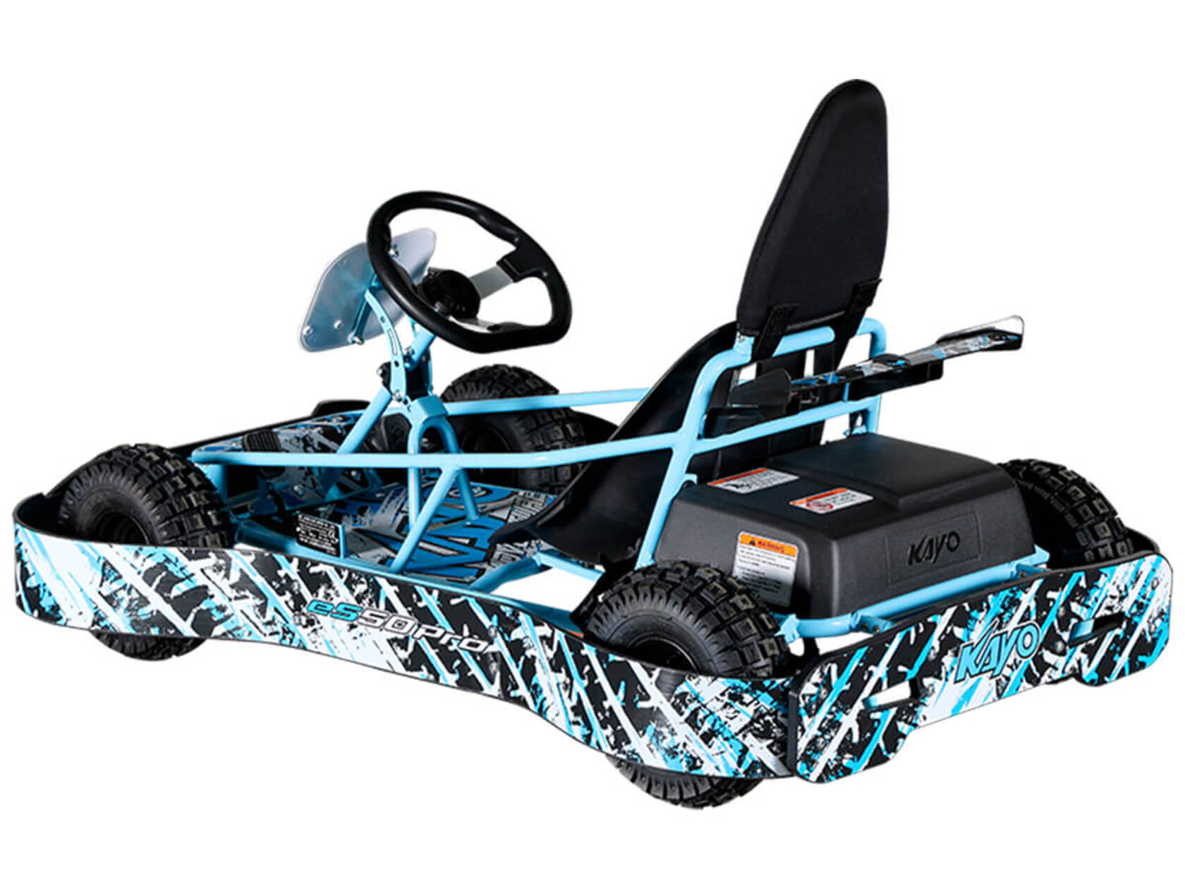 Квадроцикл KAYO еS50 Pro – детская модель с электрическим двигателем для весёлых и безопасных заездов на природе..Оснащён щёточным двигателем постоянного тока мощностью 800 Вт с воздушным охлаждением. Обеспечивает плавную и бесшумную езду без выхлопных газов. Свинцово-кислотный аккумулятор 36V9AH обеспечивает около 70 минут непрерывной работы на одном заряде. Полная зарядка аккумулятора занимает 5-6 часов..Имеет 2 скоростных режима: 12 км/ч и 19 км/ч. Трансмиссия представлена 2-ступенчатой коробкой передач с реверсом..На квадроцикле используются колёса диаметром 3 дюйма. На задних колёсах установлены механические дисковые тормоза..Габариты 1225х830х720 мм. Высота по седлу 175 мм, клиренс 95 мм, колёсная база 850 мм. Сухой вес 43 кг.