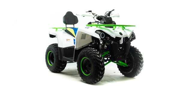 Данная модель оснащена ВЕРТИКАЛЬНЫМ двигателем, автоматической коробкой передач, увеличенными воздухозаборниками, электростартером. Предназначен для езды по бездорожью, имеет хорошую проходимость, прекрасно ведёт себя на песке, грунте и в грязи. Это одна из лучших моделей ATV по соотношению цены и качества. Подходит для новичков и любителей. Новые сбалансированные амортизаторы позволяют легко преодолевать ямы, ухабы и другие неровности. Задняя подвеска с новым, усиленным моно-амортизатором. Квадроцикл доступен в белом цвете с модернизированной линзовонной светодиодной оптикой, увеличенными ходовыми огнями и поворотниками отлично выглядит в своем новом агрессивном стиле. Дополнительная спинка пассажира, а так же USB разъем и прикуриватель. ATV RANGER 200 весит 160 кг, выдерживает нагрузку до 150 кг. Рама стальная, трубчатая, покрашена в цвет. Прочный облицовочный пластик не ломается при сгибании. Квадроцикл имеет оригинальные литые колесные диски, передние - 23х7 R10 и задние - 22х10 R10. Габариты в собранном виде (ДхШхВ): 1800х1000х1280.