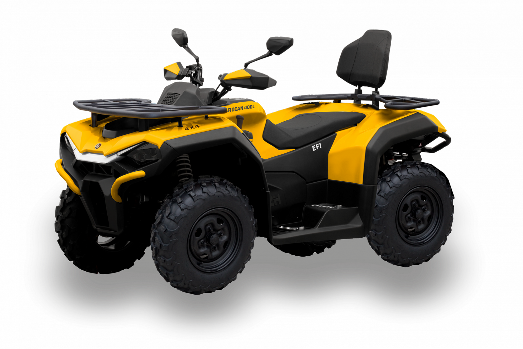 Представляем новый квадроцикл HiSUN GUARDIAN 400 L. Его девиз – надежность, проходимость, комфорт и маневренность. Он оснащен всем необходимым для вашего удобства: цифровая панель приборов, светодиодная оптика, передний и задний багажники, металлические бамперы, защита рук и зеркала заднего вида. Одним из ключевых преимуществ техники HiSUN является мощный четырехтактный двигатель, который позволяет занимать лидирующие позиции в своем классе.Современные светодиодные LED-фары обеспечивают яркое освещение дороги, что способствует безопасности передвижения в темное время суток, а крупный протектор колес обеспечивает отличное сцепление с грунтом. Удобная эргономика гарантирует высокий уровень комфорта как для водителя, так и для пассажира, а вместительный бензобак и экономичный расход топлива порадуют любого владельца!Преимущества моделиЦифровая панель приборов (7’, TFT Display)