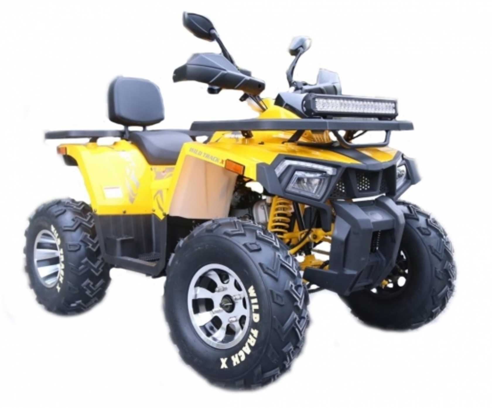 Квадроцикл MotoLand WILD TRACK X – сочетает в себе удобство, простоту обслуживания и хорошую проходимость в самых разных условиях использования. Благодаря отлично настроенной подвеске управление и передвижение на нем становится очень комфортным. Все неровности и кочки, будут проглатываться без проблем.Квадроцикл оснащен 161 QMK на 200 см3 двигателем c воздушно-масляным охлаждением и автоматической коробкой передач с реверсом, дисковыми тормозами, панелью приборов, ручным стартером. Он отлично подойдет для семейных покатушек, а также для рыбалки и охоты.В комплектацию входят фара, литые диски и подогрев ручек.