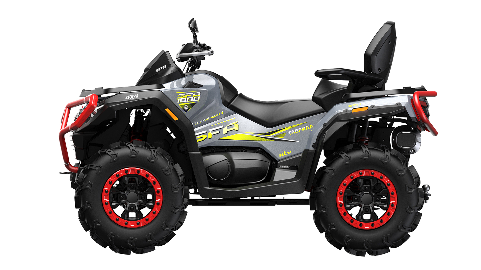 «ТАВРИДА SFA 1000» – новый современный двухместный российский квадроцикл, оснащённый литровым двигателем мощностью 95 л.с., созданный для тех, кто ценит динамику, силу и маневренность, хочет получить максимальные эмоции от управления совершенной техникой.При создании и производстве квадроцикла применены новейшие технологии, которые обеспечивают современный уровень качества и максимальную безопасность эксплуатации весь период срока службы квадроцикла.«ТАВРИДА SFA 1000» подходит как для опытных райдеров, так и для новичков, что делает его универсальным выбором. Квадроциклы «ТАВРИДА SFA 1000» демонстрируют отличную проходимость в российских суровых условиях, благодаря независимой подвеске, высокому дорожному просвету и шинам, которые обеспечивают надежное сцепление с грунтом.Выбирая «ТАВРИДА SFA 1000», Вы выбираете качество и уверенностьДвигатель 976 см³, 95 л.с.Оснащённый современным инжекторным двигателем, квадроцикл демонстрирует отличную динамику и уверенную тягу в любых условиях.– Экономичный расход топлива