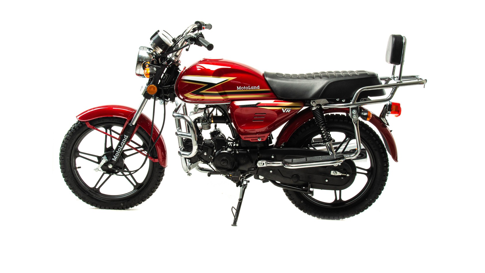 Обновленная версия мопеда альфа от мотолэнда. В мопеде Motoland Alpha VR11 удлиненная база. Это делает посадку более удобной даже для высоких людей, выемки на баке очень удобны для коленей. Для удобства пассажира присутствует спинка.Увеличенный объем бензобака , его длина стала на 10 см длиннее ранних моделей. Мотоцикл поставляется на 17 дюймовых легкосплавных дисках с шинами увеличенного размера . Спереди стоит шина 2,75 (обычно 2,5) сзади шина 3,00 (обычно 2,75). Внешний вид Motoland VR 11 стал более солидным, мопед уже выглядит как взрослый мотоцикл.Мопед с завода поставляется с 50 кубовой поршневой, в подарок мы предоставляем поршневую 110сс. При сборке мотоцикла ее нужно установить. Тк коробка передач и карбюратор PZ19 рассчитаны на работу со 110 поршневой (на 50сс поршневой свечу будет заливать).Все маркировки мопеда- рама и двигатель как у 50сс мопеда. (тк он им и является). После замены поршневой внешне никак не видно его кубатуру. У мотоцикла железные крылья, которые заметно крепче пластиковых, однако могут со временем начать ржаветь. Максимальная скорость до 85 км/час. Хорошее качество сборки.