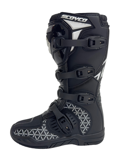 Scoyco MBM006: Полный контроль на бездорожьеМотоботы Scoyco MBM006 — созданы для тех, кто бросает вызов самым экстремальным трассам. Это ваш надежный союзник в мире мотокросса, эндуро и триала, обеспечивающий максимальную защиту, выносливость и комфорт.Ключевые преимущества:Превосходная защита: Усиленный пластиковый панцирь защищает голень, лодыжку и пятку. Регулируемый замок на щиколотке обеспечивает идеальную посадку.• Прочность и износостойкость: Комбинация кожзама и нейлона выдерживает экстремальные нагрузки. Усиленные зоны в критических точках продлевают срок службы.• Агрессивное сцепление: Шипастая резиновая подошва обеспечивает полный контроль над мотоциклом в любых условиях.• Комфорт и вентиляция: Дышащая подкладка и вентиляционные каналы эффективно отводят влагу и тепло.• Надежная фиксация: Две металлические пряжки и широкая липучка для быстрого и точного подгона.Технические характеристики:Бренд: ScoycoМодель: MBM006Назначение: Мотокросс, Эндуро, ТриалМатериал верха: Искусственная кожа, нейлон, текстильные вставкиЗащита: Носок, пятка, щиколотка (регулируемый замок), голеньПодкладка: Дышащая сетка, съёмная антибактериальная стелькаПодошва: Резиновая, масло- и бензостойкая, гибкаяЗастежка: 2 металлические пряжки + липучкаРазмеры: 39-48 (уточняйте наличие)Для кого:Профессиональные кроссмены и любители эндуро, которые ценят безопасность, контроль и результат на трассе.