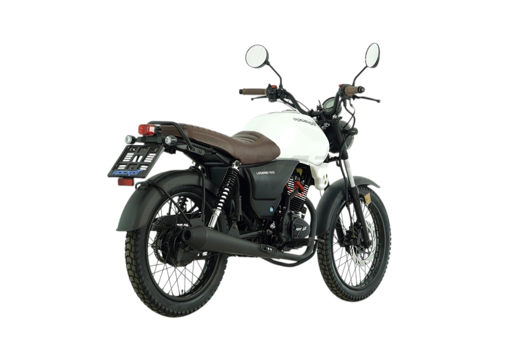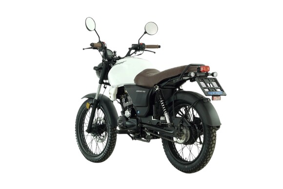 ROCKOT LEGEND 150 - классический дорожный мотоцикл, на создание которого команду специалистов Rockot-Motors вдохновили дорожные ретро-мотоциклы. В итоге, с конвейера завода сходят стильные, аутентичные, классические мотоциклы, которые отличаются от ретро-байков современными органами управления и оборудованием.При создании мотоцикла ROCKOT LEGEND 150, было взято множество образов мотоциклов по типам: классик, скремблер, каферейсер. Для придания модели духа мотоциклетной промышленности 70-х годов прошлого столетия, было решено установить металлические крылья спереди и сзади.Что, как не глушитель и его форма, может охарактеризовать стиль мотоцикла? Поэтому модель LEGEND 150 обрела фирменный глушитель, чья форма в простонародье называется “огурец”.Фара головного света имеет классическую круглую форму, а также специальную металлическую решетку “паутинку”, которая была так популярна раньше на мотоциклах класса типа скремблер.Сзади установлен округлый прямоугольный фонарь, выполненный в общей стилистике мотоцикла. Также, антуражность концепции мотоцикла достигается благодаря применению маленьких указателей поворотов круглой формы.Пожалуй, самое необычное решение, которое позволило показать, что это настоящий “железный” мотоцикл - обточенные, шлифованные ребра охлаждения на головке цилиндра. Современная LED приборная панель выполнена в круглом корпусе, что издали не отличает ее от привычного, классического спидометра.Мотоцикл ROCKOT LEGEND 150 выпускается в двух цветах: с белым глянцевым и черным матовым топливными баками. Но это не все их отличия. Модель белого цвета в своей комплектации имеет коричневое сиденье из эко кожи и коричневые ручки руля. Во второй расцветке мотоцикл выполнен полностью в черном цвете.LEGEND 150 оснащен ста пятидесяти кубовым четырехтактным двигателем CG150 производства Zongshen, который развивает мощность 11 лошадиных сил. Данная модель двигателя отлично зарекомендовала себя благодаря высокому уровню надежности, легкости в обслуживании и высоким показателям мощности и крутящего момента. Все это обусловлено конструкцией системы ГРМ с нижним распредвалом.Коробка передач - пятиступенчатая с многодисковым сцеплением мокрого типа. За образование топливной смеси отвечает карбюратор PZ27, который позволит добиться от двигателя максимальных мощностных характеристик и при этом останется экономичным. Как принято на мотоциклах типа “скремблер”, дорожный мотоцикл ROCKOT LEGEND 150 оснащается длинноходной подвеской. Спереди установлены классические амортизаторы длиной 700 мм и толщиной 31 мм. Сзади мотоцикл оборудован двумя пружинно-гидравлическими амортизаторами. Хоть мотоцикл и не развивает высокую максимальную скорость (до 110 км/ч), он оборудован дисковым гидравлическим тормозом спереди. И барабанным механическим тормозом сзади. Передний двухпоршневой тормозной суппорт работает в паре с 240 мм тормозным диском. Спереди и сзади установлены 18-ти дюймовые диски с универсальными покрышками размерностью 2.75-18 и 3.00-18. Прочные стальные спицевые диски окрашены в черный матовый цвет.