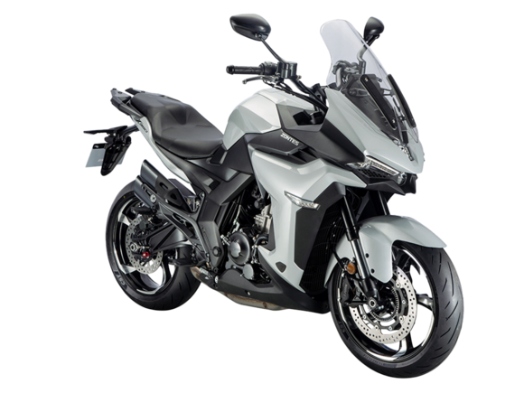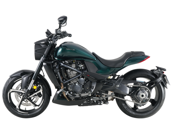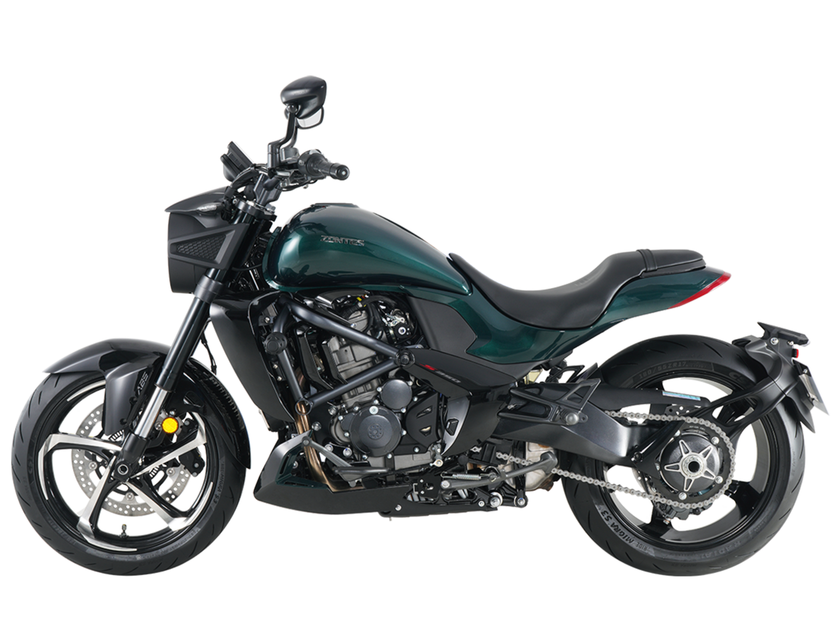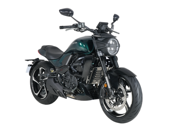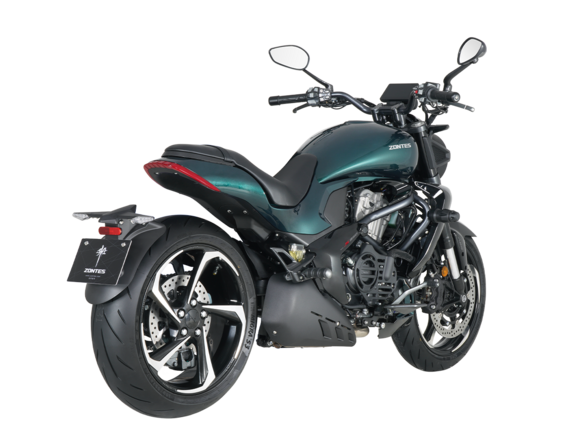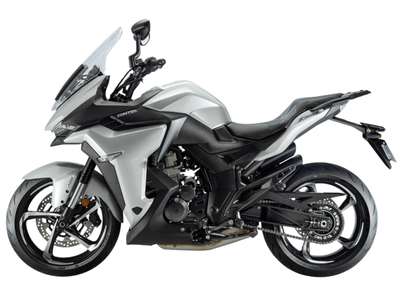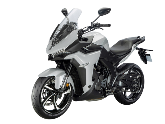 Мотоцикл ZONTES ZT350-S – лёгкий круизёр со стремительным и современным дизайном. Хорошо подходит как для повседневных поездок по городу, так и для покорения дальних маршрутов.Силовая установка представлена одноцилиндровым 4-тактным двигателем ZT184MP с 4 клапанами и 2 верхними распредвалами. Двигатель имеет объём 348 см³ и обеспечивает мощность в 39 л.с. Оснащён инжектором BOSCH и системой жидкостного охлаждения. Механическая коробка передач имеет 6 ступеней и схему 1-N-2-3-4-5-6. Запуск двигателя осуществляется с помощью бесключевого доступа.Ёмкость топливного бака 16 литров.Колёса представлены литыми алюминиевыми дисками диаметром 17 дюймов. На мотоцикл установлены датчики давления в шинах, показатели от которых выводятся на приборную панель. Для подвески спереди используется телескопическая вилка, сзади – моноамортизатор. Гидравлические дисковые тормоза произведены испанской компанией J.JUAN, входящей в холдинг BREMBO.Для освещения используется яркая LED-оптика, а приборная панель представлена цифровым дисплеем. Рычаги тормоза, сцепления и лапки КПП можно отрегулировать. Имеется 2 USB-порта.Габариты мотоцикла 2080х860х1150 мм. Колёсная база 1430 мм. Высота по седлу 750 мм. Вес 176 кг.