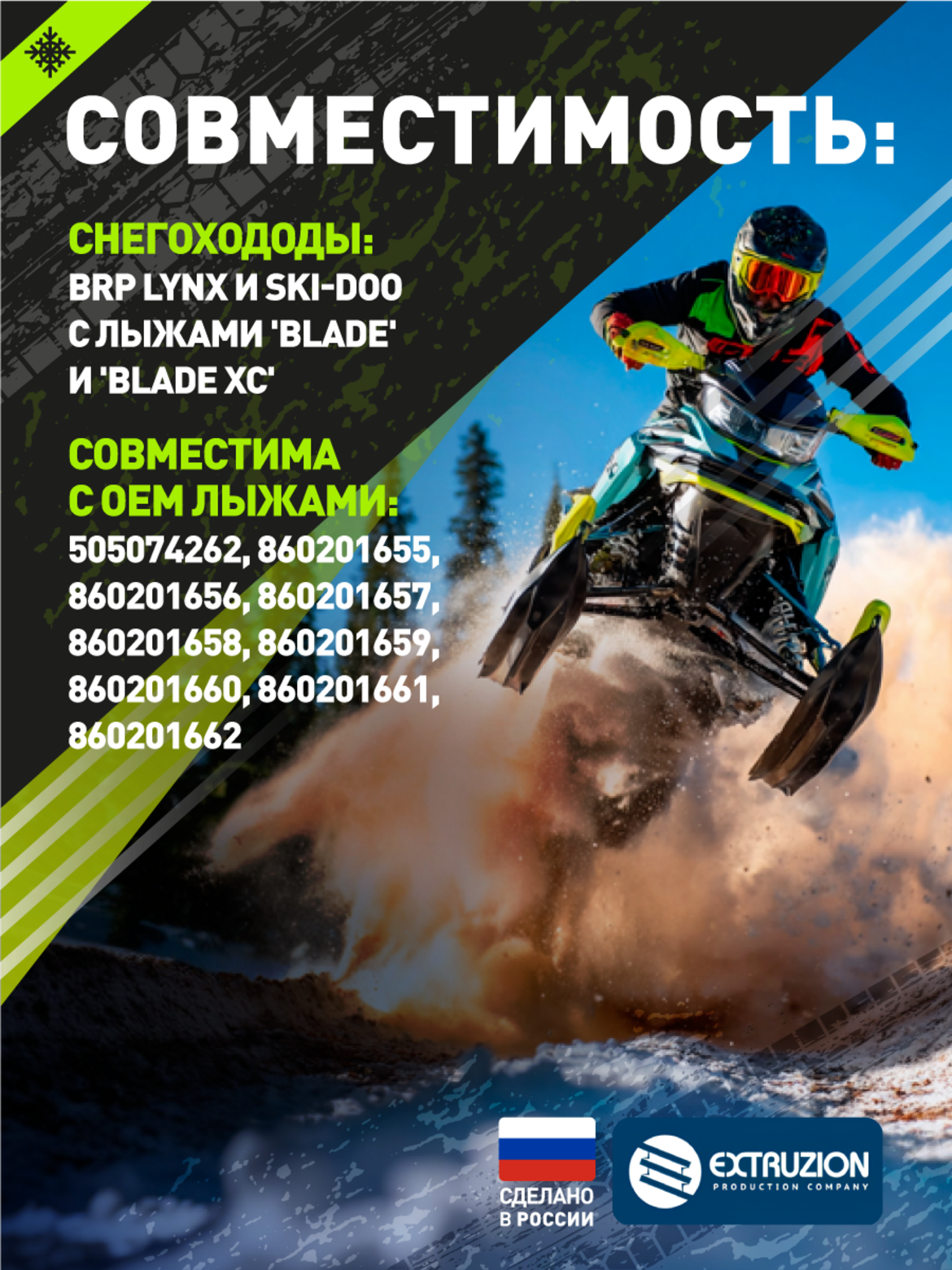 Точное соответствие и эффективность. Специально разработана для точной посадки на лыжи BRP Blade Идеальная совместимость с геометрией оригинальных лыж Улучшает общее скольжение и снижает сопротивление движению