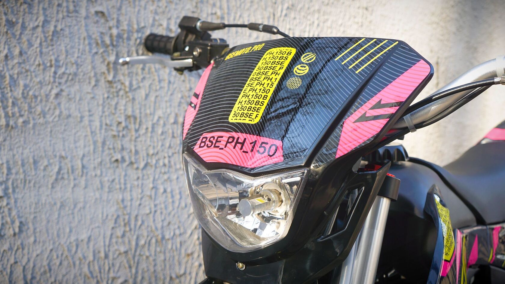 BSE PH150 – король питбайков в линейке BSE.PH150 на колесах 17/14 оснащен самым мощным двигателем среди питбайков BSE и самой богатой комплектацией.Основа PH150 - рама из хромомолибденовой стали повышенной жесткости с литыми усилителями — фирменный знак качества завода BOSUER! Силовая установка питбайка — надежный и тяговитый 4-тактным двигателем YX объёмом 150 см3 с воздушным охлаждением. Максимальная мощность – внушительные 15 л.с. Питает мотор карбюратор MIKUNI VM26. Питбайк оснащен 4-ступенчатой механической трансмиссией. Запуск мотора осуществляется при помощи электростартера или кик-стартера. Подвески с большими ходами: передняя — телескопическая вилка перевёрнуто типа, задняя — моноамортизатор.LED фара головного света, "злая" резина, мощная тормозная система HSK Racing, японские колесные подшипники NTN, защита мотора, руль ProTaper - питбайк полностью укомплектован всем необходимым для покатушек и гонок.PH150 – профессиональный выбор самого продвинутого "питбайкера".