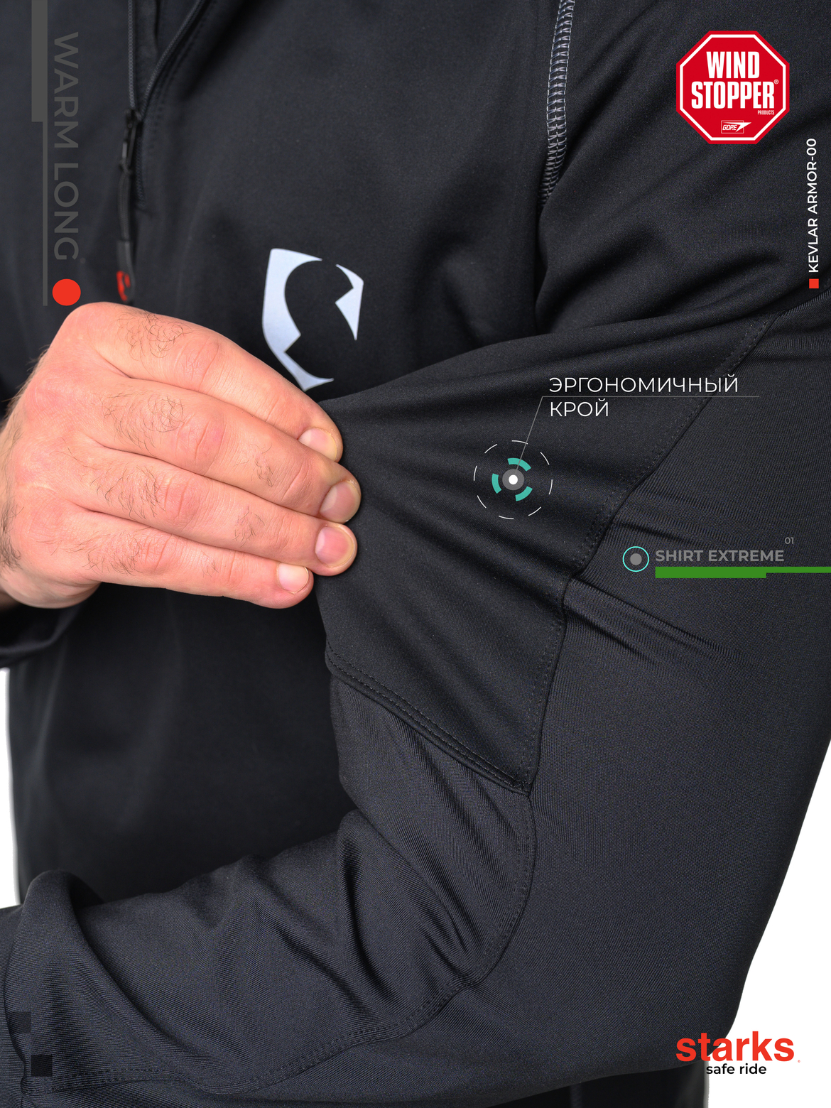 STARKS Кофта WARM Long shirt Extreme (муж.,XL,черный) pitbikemarket.ru