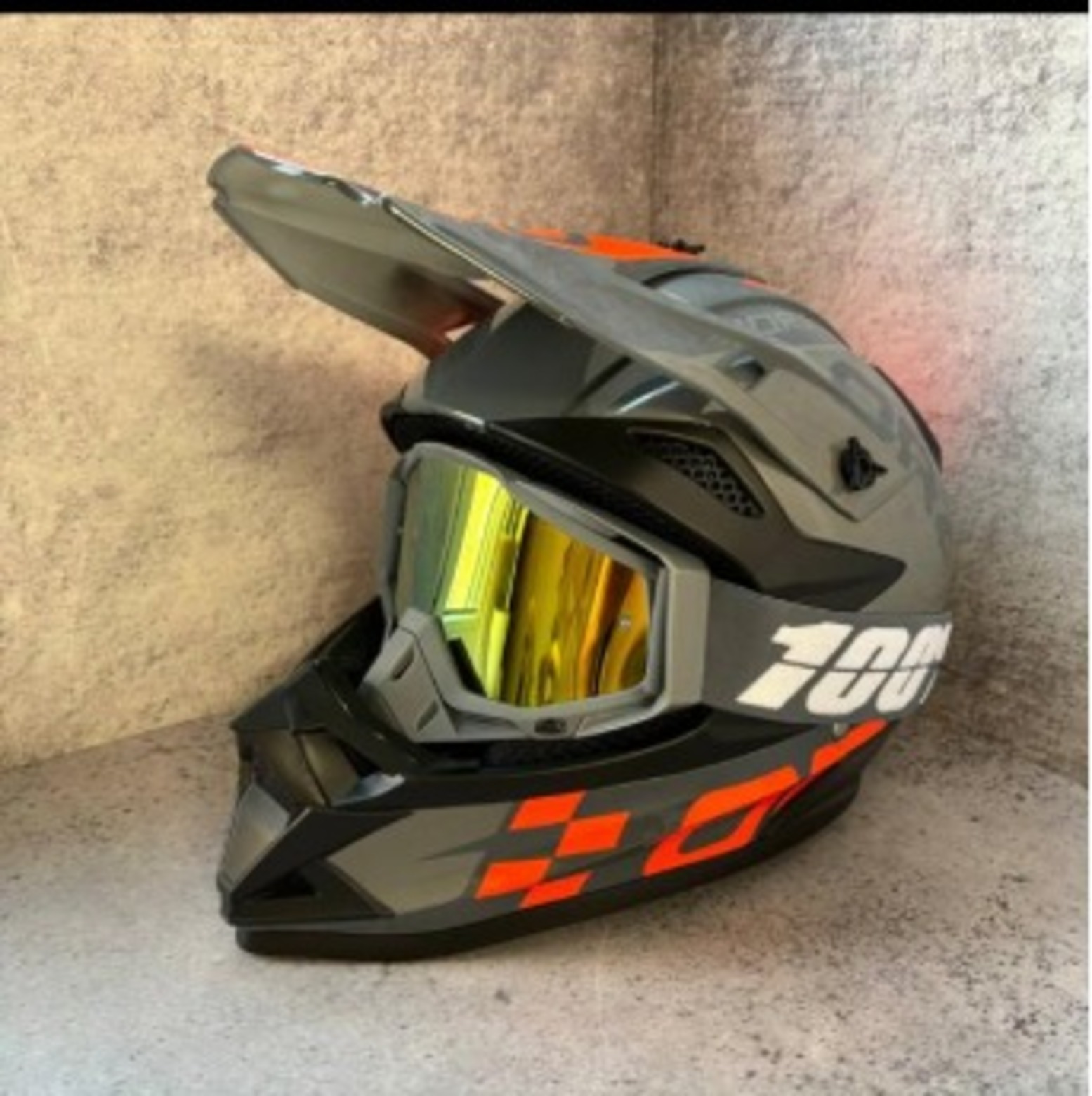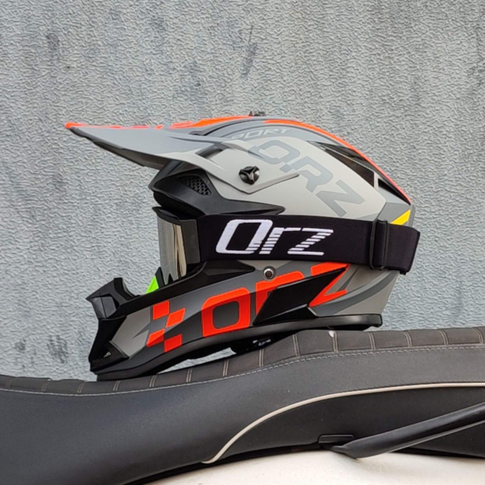 Шлем кроссовый ORZ, Серый/Черный, M (в комплекте с очками 100%)