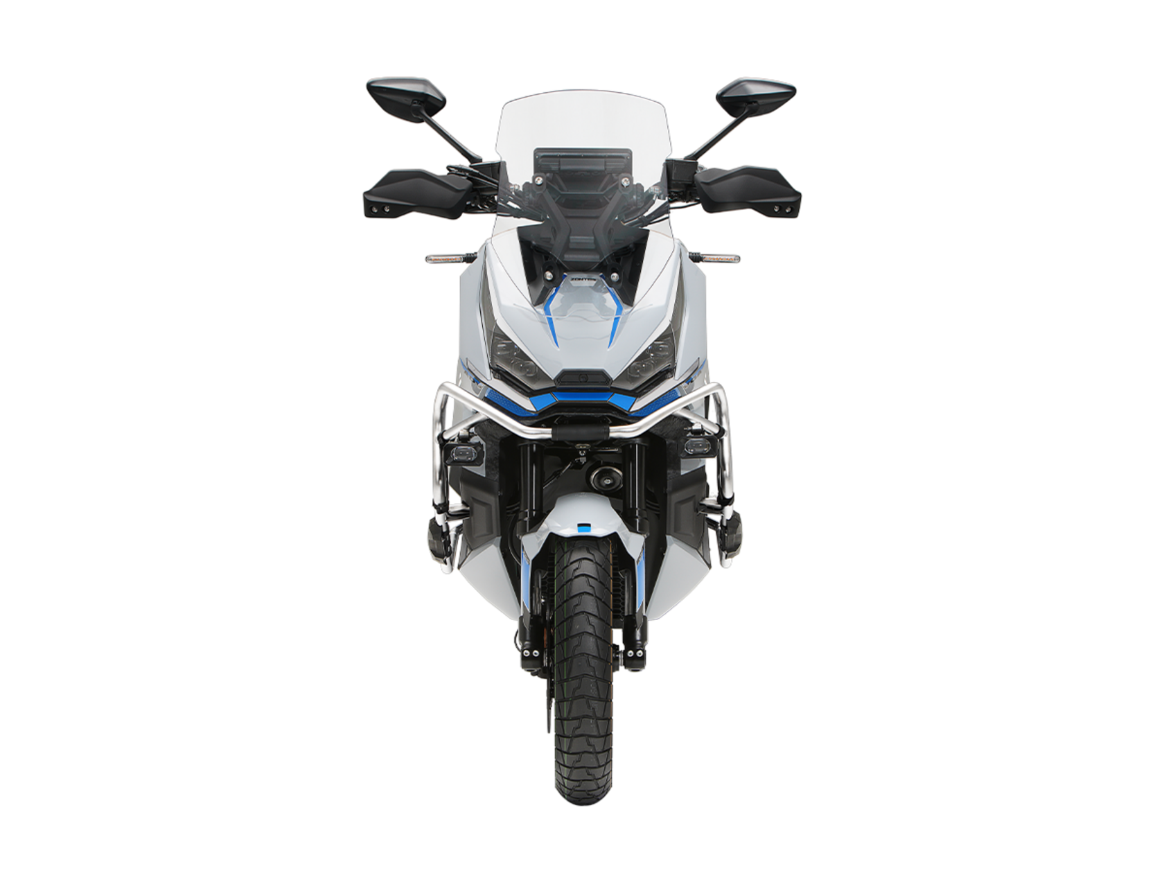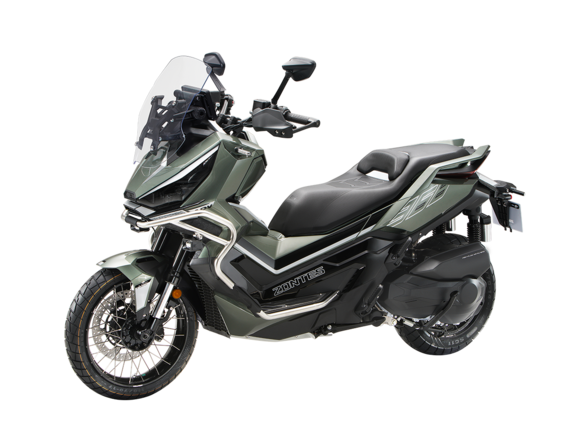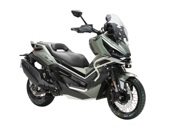 Скутер ZONTES ZT368-G – максискутер двойного назначения, готовый пронестись по улицам города за его пределы и отправиться по грунтовым тропам прокладывать свой маршрут туда, куда вам потребуется. Регулируемая подвеска с перевёрнутой телескопической вилкой спереди обеспечит отличную управляемость и устойчивость в любых условиях.Силовая установка представлена одноцилиндровым 4-тактным двигателем. Двигатель имеет объём 368 см³ и обеспечивает мощность в 38,8 л.с. Оснащён инжектором BOSCH, системой жидкостного охлаждения и вариатором. Запуск двигателя осуществляется с помощью бесключевого доступа.Ёмкость топливного бака 17,5 литра.Колёса имеют диаметр 17 дюймов спереди и 14 дюймов сзади. Для подвески спереди используется телескопическая вилка перевёрнутого типа, а сзади установлены 2 гидравлических амортизатора. Гидравлические дисковые тормоза произведены компанией J.JUAN, входящей в холдинг BREMBO. Мотоцикл также оснащён 2-канальной ABS-системой, противобуксовочной системой TCS System и датчиками давления в шинах.ZT350-G оборудован яркой LED-фарой, мультимедийной приборной панелью с TFT-дисплеем, имеются 2 USB-порта.Габариты скутера 2230х925х1290 мм. Колёсная база 1560 мм. Высота по седлу 795 мм. Вес 198 кг.