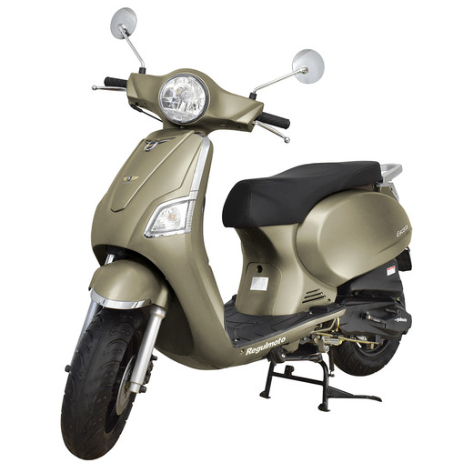 Питбайкмаркет представляет вниманию поклонников утилитарной мототехники скутер Regulmoto Estate 125 (LJ125T-V), который Вы можете приобрести в нашем мотосалоне и интернет-магазине с доставкой до терминала транспортной компании-перевозчика в Вашем регионе.Данная модель скутера производства китайской компании Ningbo Longjia Motorcycle широко известна европейским поклонникам малокубатурной мототехники. Под именем Longjia 125T-V завоевал определенную популярность в Великобритании, Италии, Польше и других странах ЕС. Потребителей привлекают отличный внешний вид скутера, высокое качество компонентов и качественная сборка, доступная цена и невысокая стоимость сервисного обслуживания.Дизайн скутера выполнен в узнаваемом ретро-дизайне, однако множество используемых компонентов мототехники соответствуют актуальным тенденциям мотоиндустрии. Литые колесные диски с 12-дюймовыми широкими покрышками, надежные дисковые тормоза на переднем и заднем колесах, электростартер, подвеска, представленная телескопической вилкой спереди и гидравлическим амортизатором сзади, – все это говорит о большем уровне безопасности и комфорта при повседневном использовании скутера.Скутер Regulmoto Estate 125 оснащается 4-тактным двигателем с воздушным охлаждением. В паре с инжектором мотор рабочим объемом 124 см3 демонстрирует 8,8 максимальной мощности при 8000 оборотах/мин; максимальная развиваемая скорость составляет 90 км/ч. На скутере реализована автоматическая трансмиссия с ременным вариатором, простая и надежная в эксплуатации конструкция. Дополнительное оборудование представлено полным комплектом светотехники, приборной панелью, зеркалами заднего вида.Легкость управления, надежность и неприхотливость Regulmoto Estate 125 будут на руку, как начинающим, так и опытным водителям. Технические характеристики оборудования и широкие эксплуатационные возможности скутера позволяют ему стать отличным вариантом выбора надежного транспортного средства для ежедневных поездок в черте города и за его пределами.