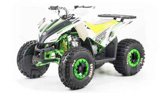 Подростковый бензиновый квадроцикл Motoland Coyote 125 см3, мощностью 7 л.с. с автоматической трансмиссией, светодиодной оптикой и электростартером Хотите порадовать ребенка ? Квадроцикл Motoland Coyote 125 - идеальное средство. Красивый дизайн с LED-оптикой, резвый двигатель, панель приборов, чека безопасности, мощный передний бампер и крутые внедорожные колеса. Очень простое и легкое управление. Скоростной режим может контролироваться родительским брелком. Подойдет для управления детям от 5 до 11 лет. Поставляется в заводской коробке. Три расцветки на выбор, - уточняйте из наличия.