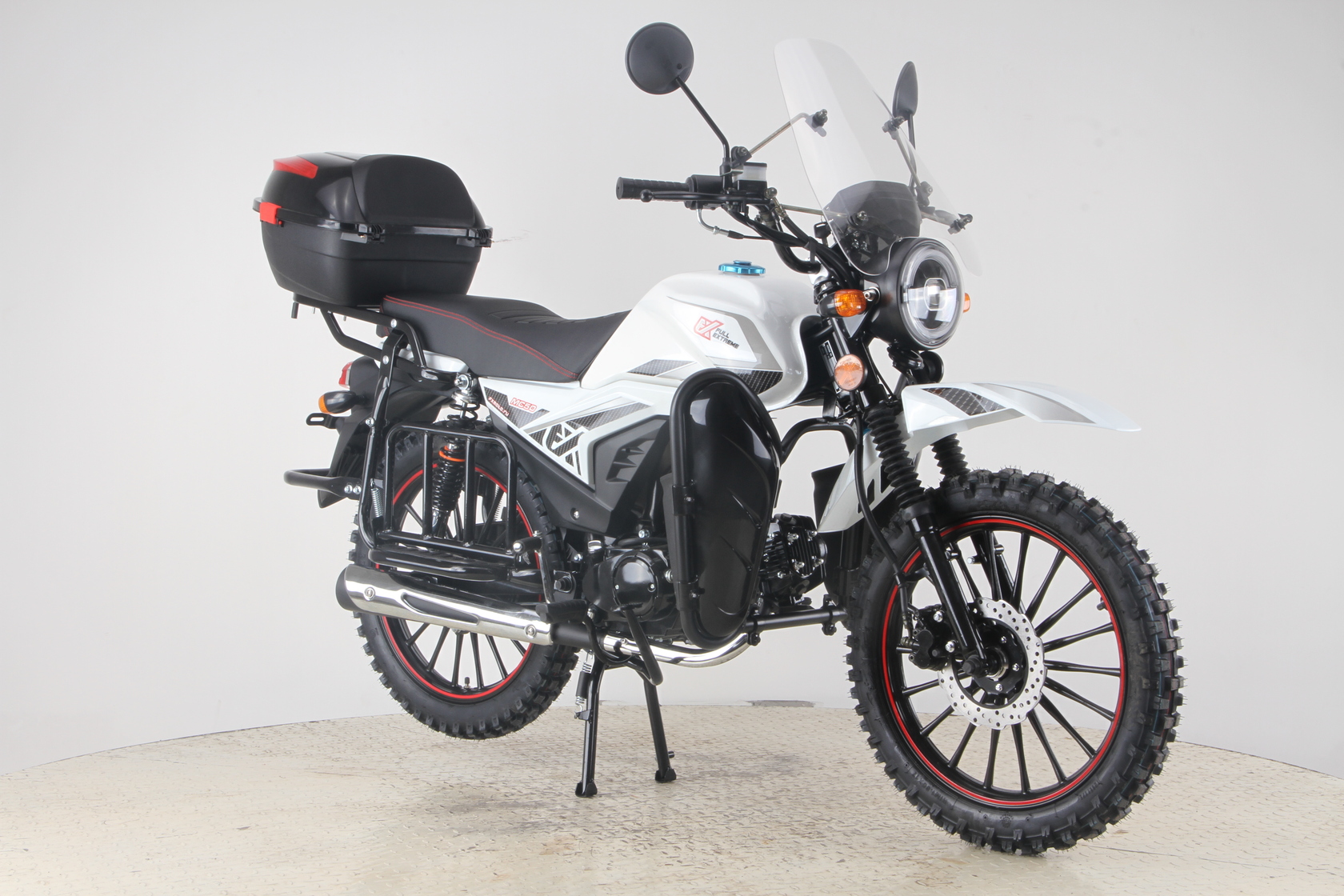 Модель оснащена литыми алюминиевыми дисками и мощным двигателем 139FMB, который по факту имеет объем 125 кубов и развивает 9 лошадиных сил. Эта модель легко запускается благодаря наличию электростартера и кикстартера. Вместительный 10-литровый бак позволяет осуществлять длительные поездки без частых заправок. С колесами 17/17 мопед легко справляется с любыми дорожными условиями, обеспечивая плавное и безопасное движение.Мопед FX MC-50 Max Off Road рассчитан на максимальную нагрузку до 150 кг, что делает его подходящим для двух пассажиров. К тому же для него не требуется ПТС, что значительно упрощает процесс оформления и эксплуатации. Каждый мопед в нашем салоне собирается и проходит тщательную проверку опытными механиками, что гарантирует высочайшее качество сборки и надежность техники.