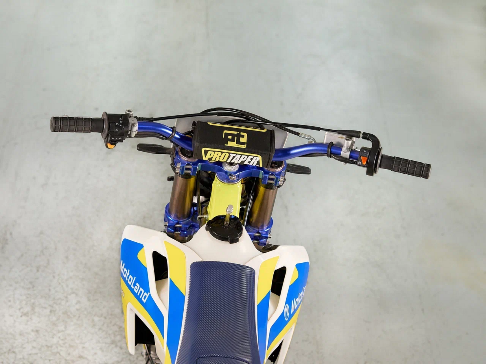 MotoLand TT 250 Новинка весны 2020 года. Теперь с ПТС.Надёжная техника из самых популярных компонентов оснащена Двигателем ZONGSHEN 172FMM с кикстартером и электростартером Мощностью 21 Л.С. на двигателе установлен Карбюратор NIBBI PE28.Это полноразмерный кроссовый мотоцикл его база по осям составляет 1430 мм., и габаритами 2180х800х1300 мм. Высота по седлу составляет 950 мм., что по сравнению с Моделью XT 250 ST 21/19 ниже порядка 20 мм. Что позволяет комфортно себя чувствовать райдерам среднего роста.За счет сбалансированной базы мотоцикл имеет отличную управляемость, а конструкция рамы и особенности настройки подвески GPX способствуют максимальному поглощению неровностей дорожного покрытия, а так же усиленная прогрессия на игольчатых подшипниках.Алюминиевые обода c антибуксаторами, усиленными спицами и ступицами CNC. На кроссовой резине Yuanxing 80/100-21 / 100/90-18На мотоцикле установлена обновлённая тормозная система аналог «brembo» с медными колодками , что обеспечивает отличные тормозные характеристики. Особенностью заднего тормоза является, лапка верхнего расположения с эксцентриковой регулировкой.Выпускной патрубок с резонатором Power Bomb имеет крепления на пружинах для снижения вибрации. Глушитель с уникальным дизайном прямоточного типа, полностью алюминиевый для облегчения веса.