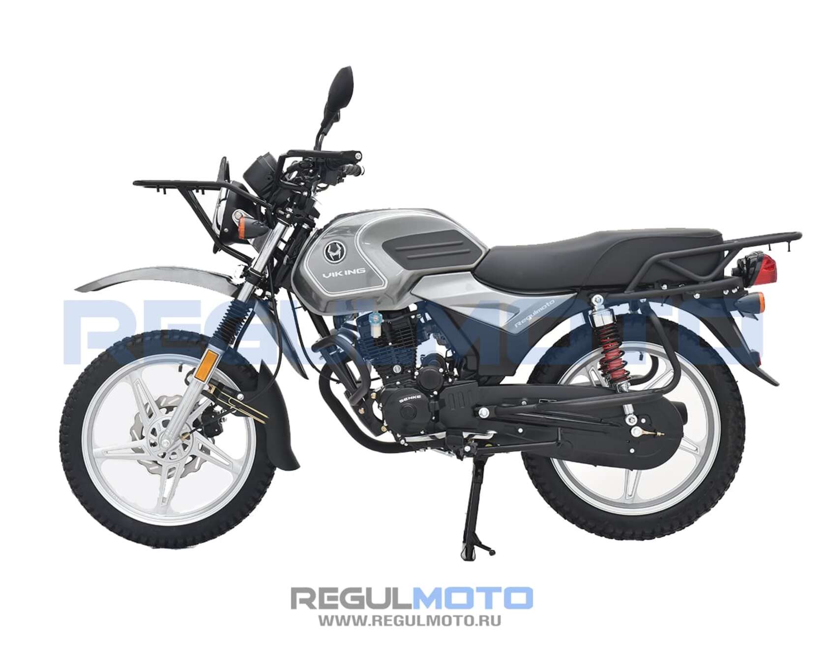 Компания «Regulmoto» представляет вниманию поклонников двухколесной мототехники мотоцикл Regulmoto VIKING – надежный и доступный для многих байк с широкими эксплуатационными возможностями. Мотоцикл Regulmoto VIKING – один из ярких представителей линейки малокубатурной мототехники известного азиатского производителя Senke. Мотоциклы производства одного из крупнейших китайских концернов пользуются заслуженным признанием экспертов и мотолюбителей в различных частях света, включая Европу и Америку. Продукцию Senke отличают не только одно из лучших на рынке соотношений достойного качества и демократичной цены, но и солидный эксплуатационный ресурс, высокая надежность, простое и недорогое сервисное обслуживание.В раме мотоцикла с 18-дюймовыми колесами на литых дисках установлен 4-тактный 150-«кубовый» двигатель с воздушным охлаждением, который способен развивать максимальную мощность в 11,6 лошадиных сил. Наличие у двигателя балансирного вала способствует снижению вибрации при работе мотора. 5-ступенчатая трансмиссия, электростартер, полноценная подвеска, представленная телескопической вилкой спереди и двумя амортизаторами и маятником сзади, приборная панель и емкий топливный бак – все это позволит получать максимум удовольствия от поездки. За безопасность использования мотоцикла отвечают надежная тормозная система (дисковый тормоз спереди и барабанный сзади), комплект светового оборудования и зеркал заднего вида.