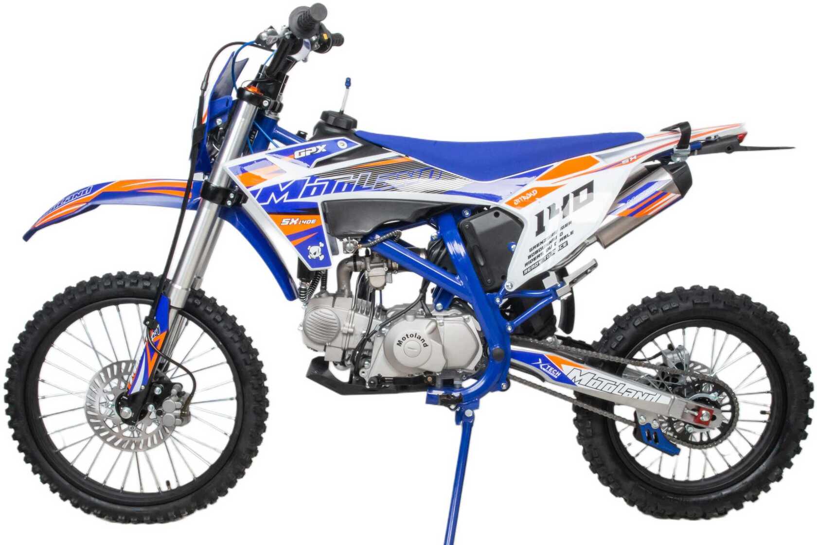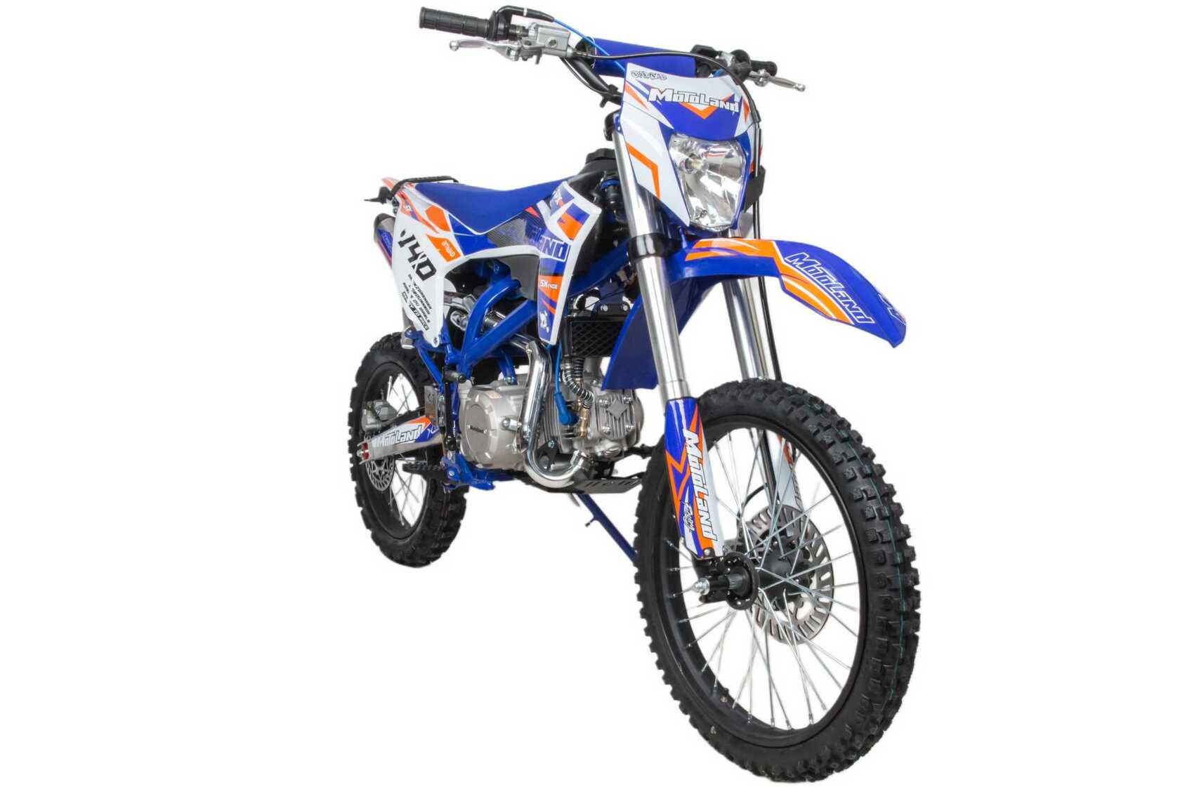 Встречайте долгожданную новинку SX на 140 куб. Питбайк Motoland SX 140 E 19/16 идеален для поездок по грунтовым дорогам и бездорожью. Хорошо чувствует себя на мягком и среднем грунте, разгоняется до 90 км/ч. Оснащён спортивными траверсами и амортизаторами с регулировкой. весит всего 75 кг.Питбайк прост в управлении и не требует специального ухода, подойдёт как новичкам, так и любителям мотокросса.У питбайка отличный узнаваемый дизайн. Конструкция подчёркивает неуступчивый спортивный характер, который не остановится ни перед одним препятствием.Комбинированный прочный пластик не ломается при сгибании.Передняя подвеска — телескопическая вилка перевёрнутого типа с регулировками, которая отлично подходит для преодоления ям, и других неровностей плохих дорог или их отсутствия. Задняя подвеска маятниковая с моноамортизатором тоже с регулировкой.Питбайк оснащён карбюратором NIBBI PE 22 и одноцилиндровым четырёхтактным двигателем с воздушно-масляным охлаждением. Надёжный мотор 156 FMJ