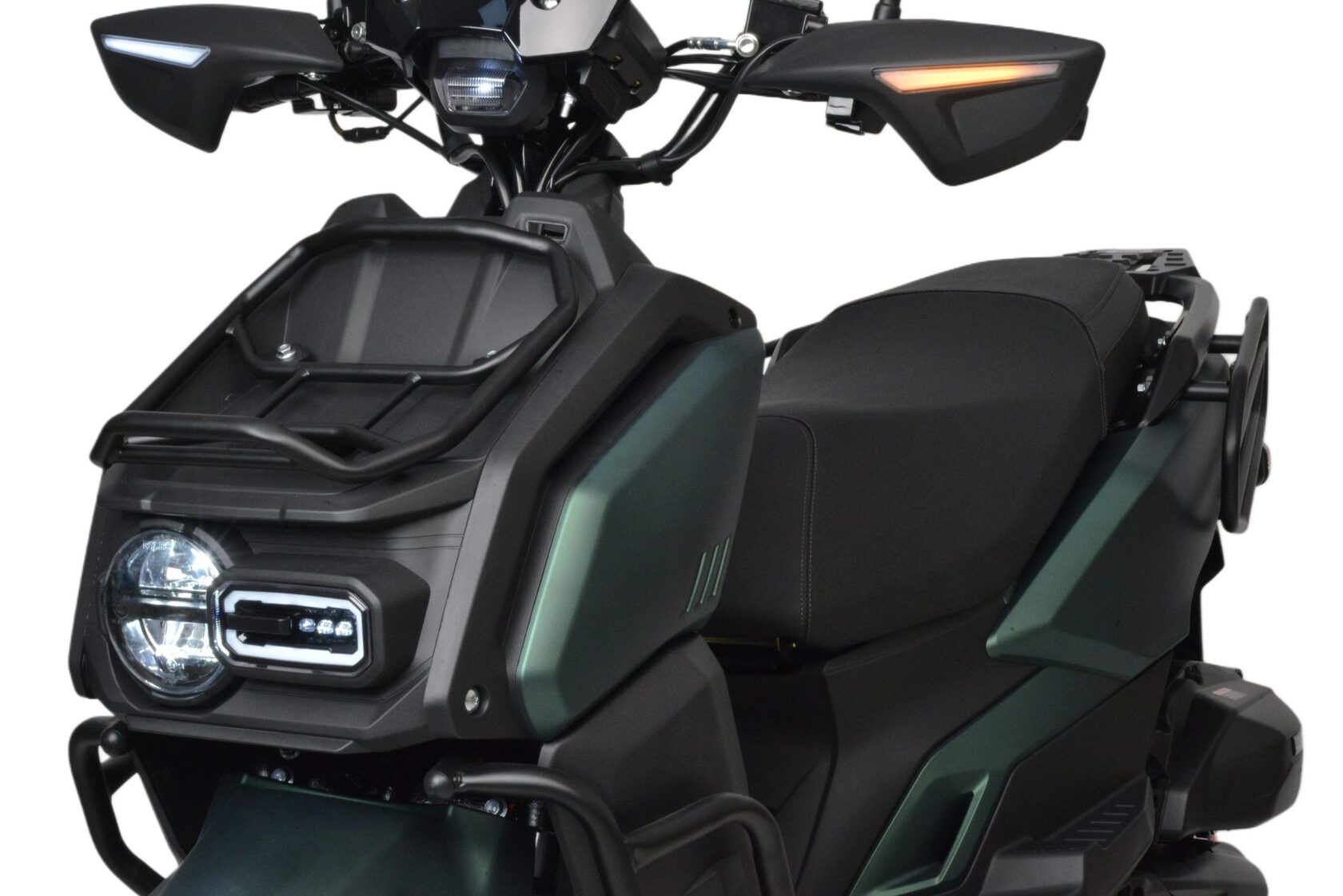 Скутер Motoland Tank - отличный вариант для загородных поездок и рыбалки: имеет множество дополнительных защит и закрытий, колеса 12" с резиной для поездки по грунтовой дороге и асфальту.Брутальный внешний вид и черный цвет делает его не похожим на другие скутера. Дополнительные ДХО, светодиодные поворотники и стоп-сигнал.На скутере установлен одноцилиндровый четырехтактный двигатель 157 QMJ мощностью 10 л/с и рабочим объемом 150 см3 с принудительным охлаждением, что позволяет ему не перегреваться даже в сильную жару. Система запуска кикстартер + электростартер. Трансмиссия - вариатор, не требующий манипуляциях с переключением скоростей. Это очень удобно при эксплуатации и не вызывает сложностей, просто сел, повернул ручку газа и поехал. Все тормоза - дисковые гидравлические.Подвеска - передняя вилка телескопическая и два задних амортизатора. Колесные диски литые алюминевые, на которые установлены качественные покрышки 120/70-12".Выдерживает нагрузку до 150 кг, что позволяет перевозить одного пассажира. Под сиденьем есть большое багажное отделение + площадка для крепления дополнительного кофра. Приборная панель — электронная, с очень крупными, легко читаемыми цифрами и часами; со всеми необходимыми указателями.Габариты: 1900 х 710 х 1170 мм. (без учета зеркал)